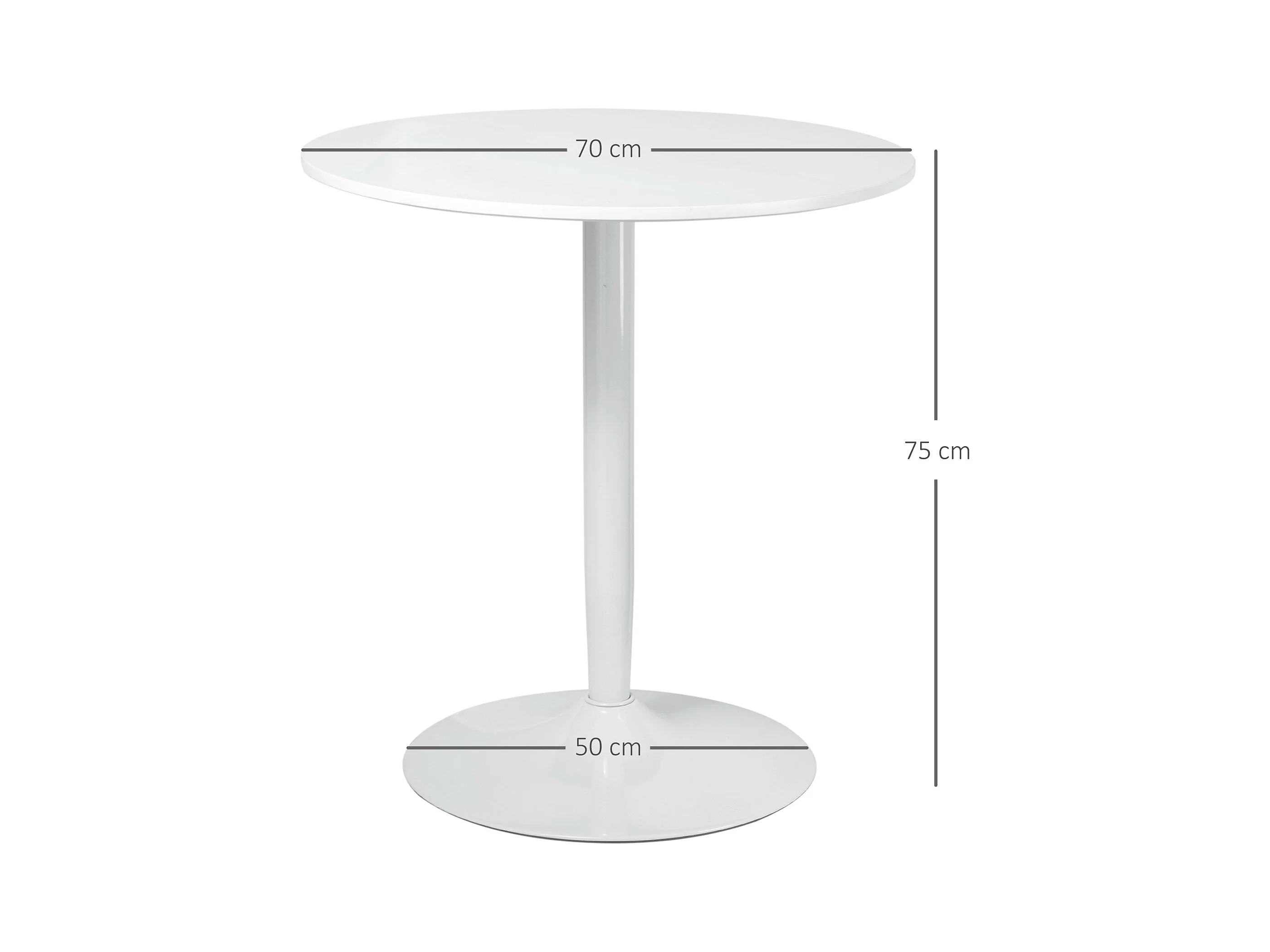 Table ronde pour 2 personnes, design moderne, MDF, blanc (70x70x75 cm)