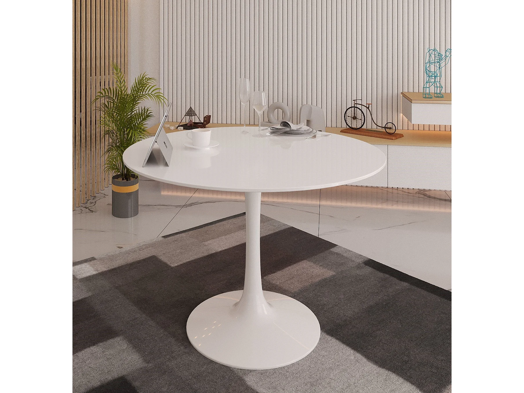 Table fixe Dpavard, Table de cuisine ronde, Table de salle à manger, Table avec plateau polyvalent, 100x100h75 cm, Blanc