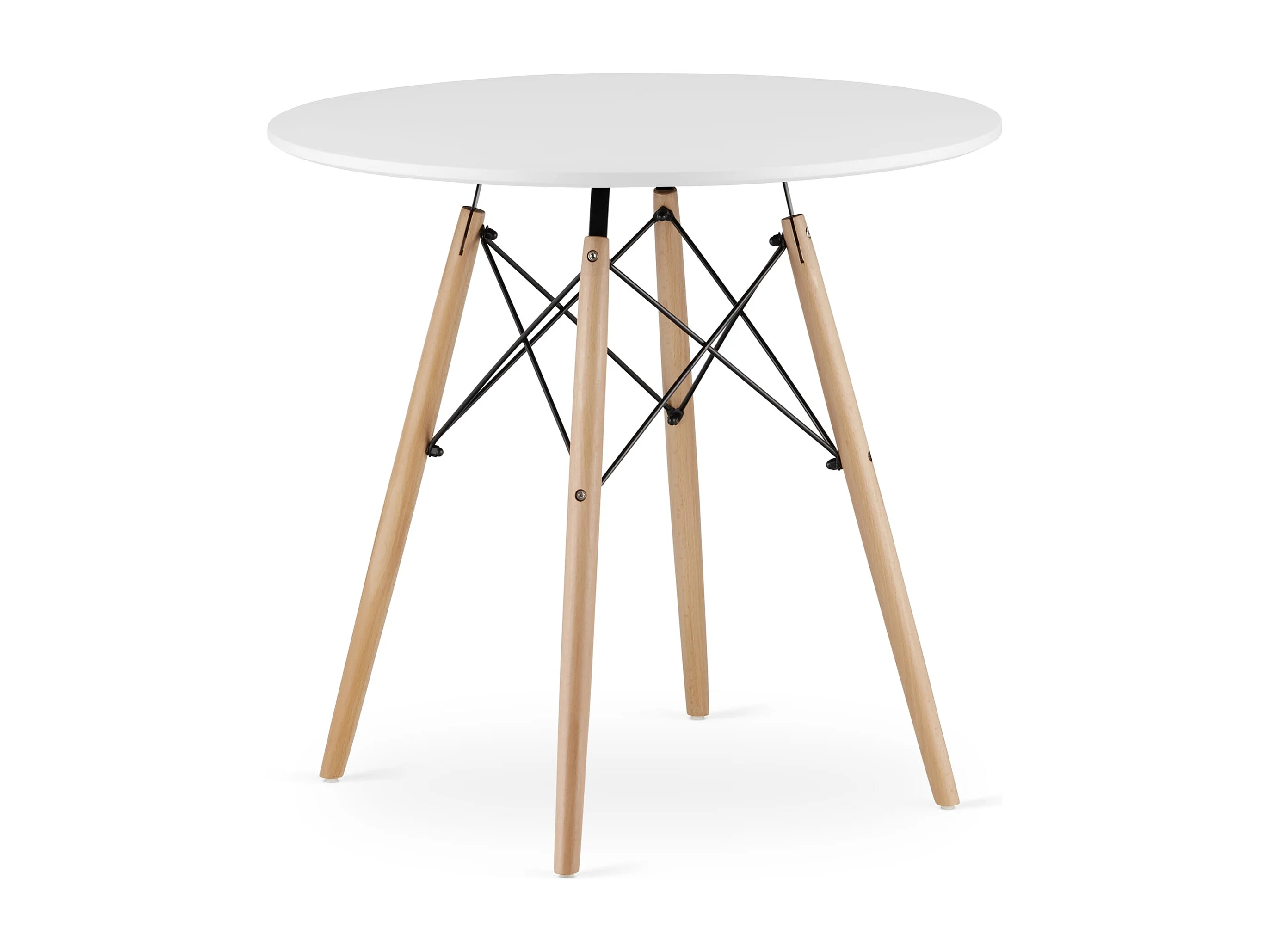 Table ronde Valora KOVA Ø80 blanche + 4 chaises OSAKA bleues