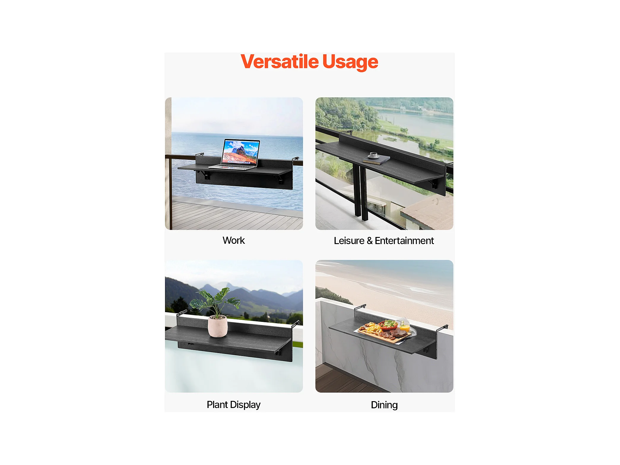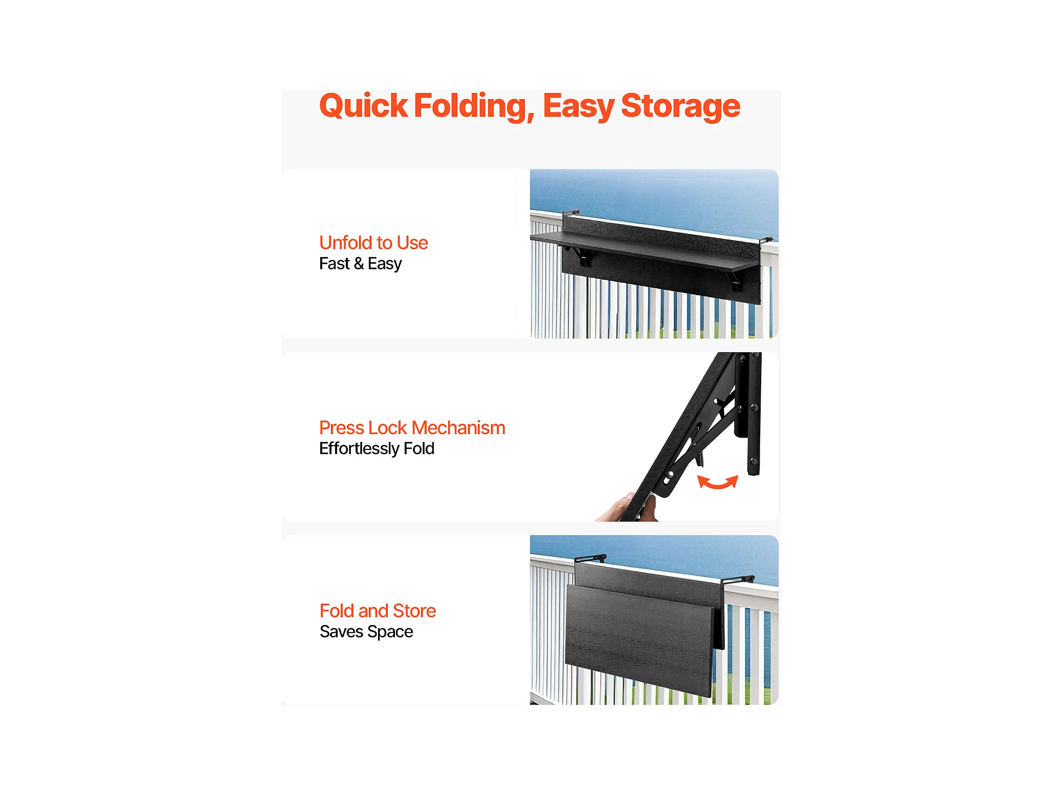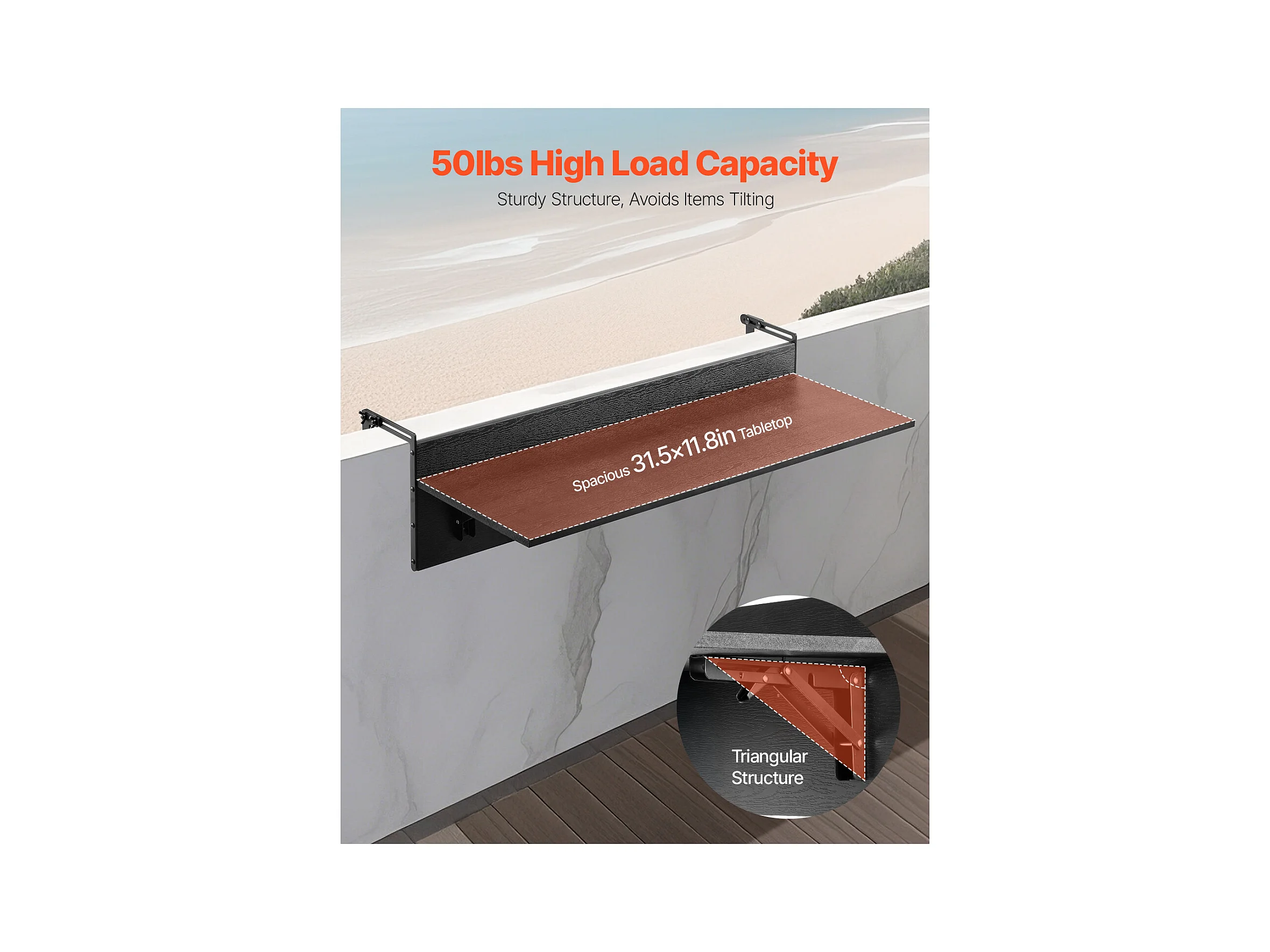 Table Suspendue de Balcon, SucceBuy Table de Bar Pliante pour Balcon 30 × 81 cm, Table de Service pour Patio Extérieur