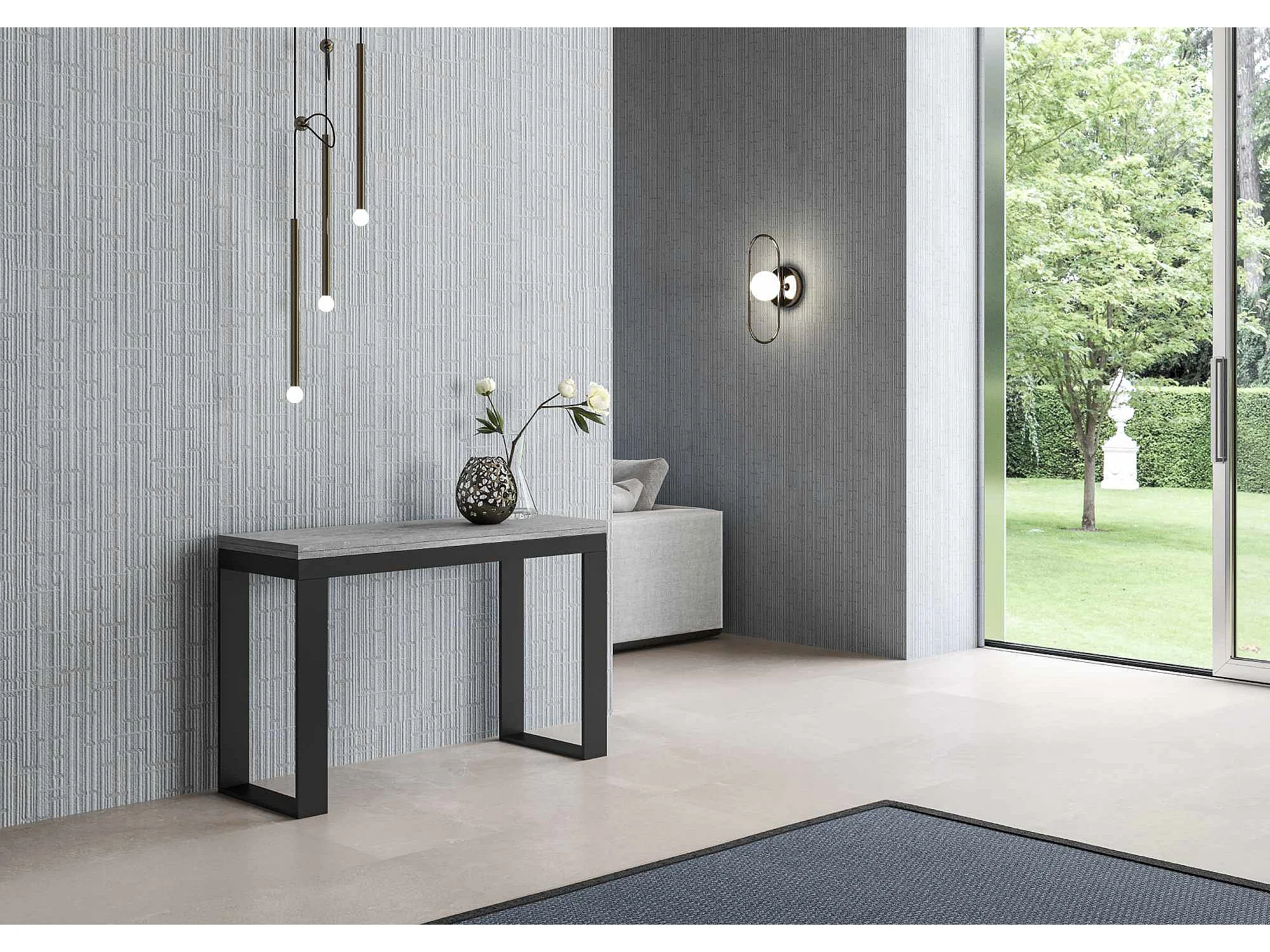Table extensible portefeuille 120x45/90 cm Tecno Double Gris Béton cadre Anthracite