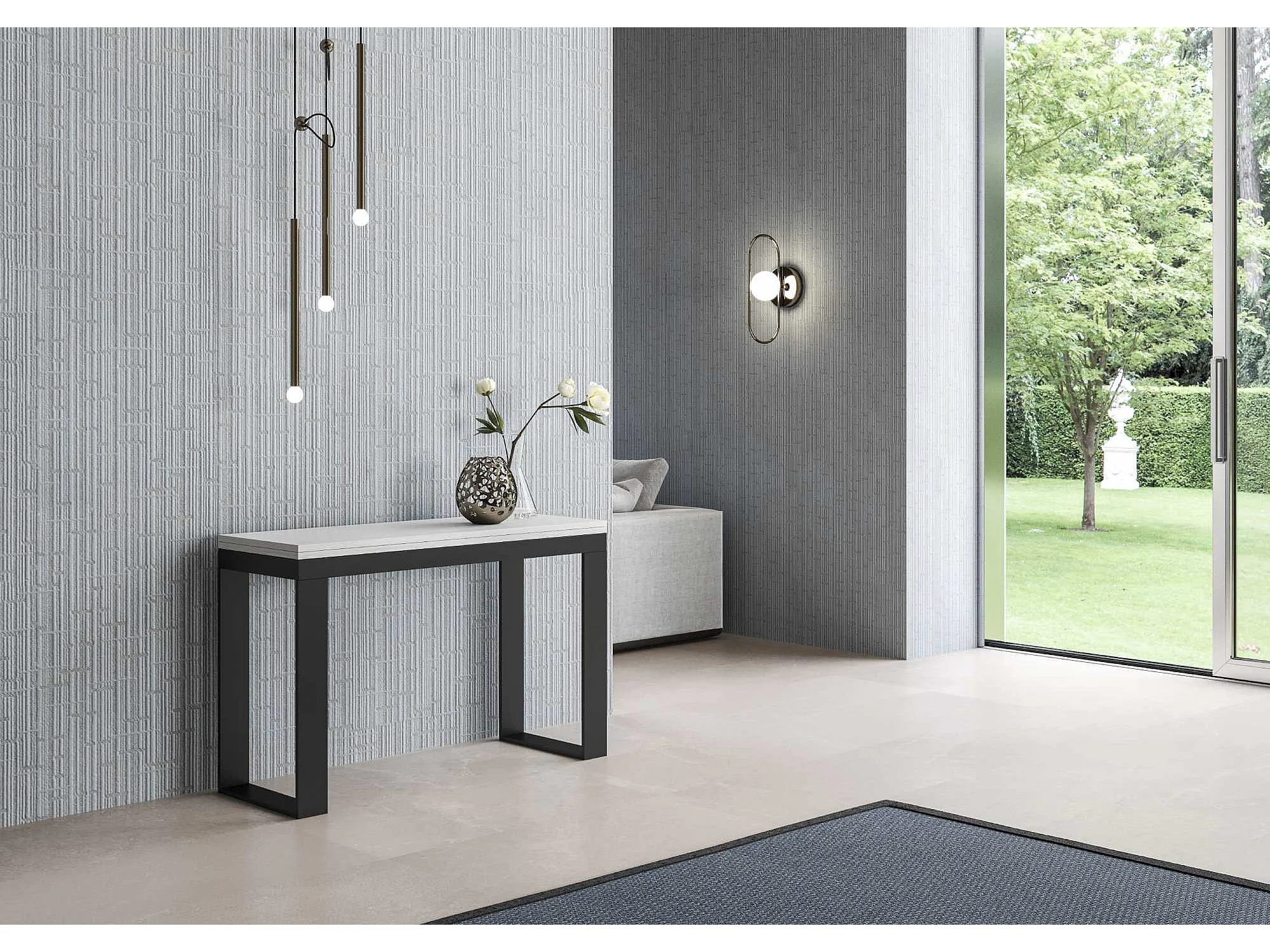 Table extensible portefeuille 120x45/90 cm Tecno Double Frêne Blanc cadre Anthracite