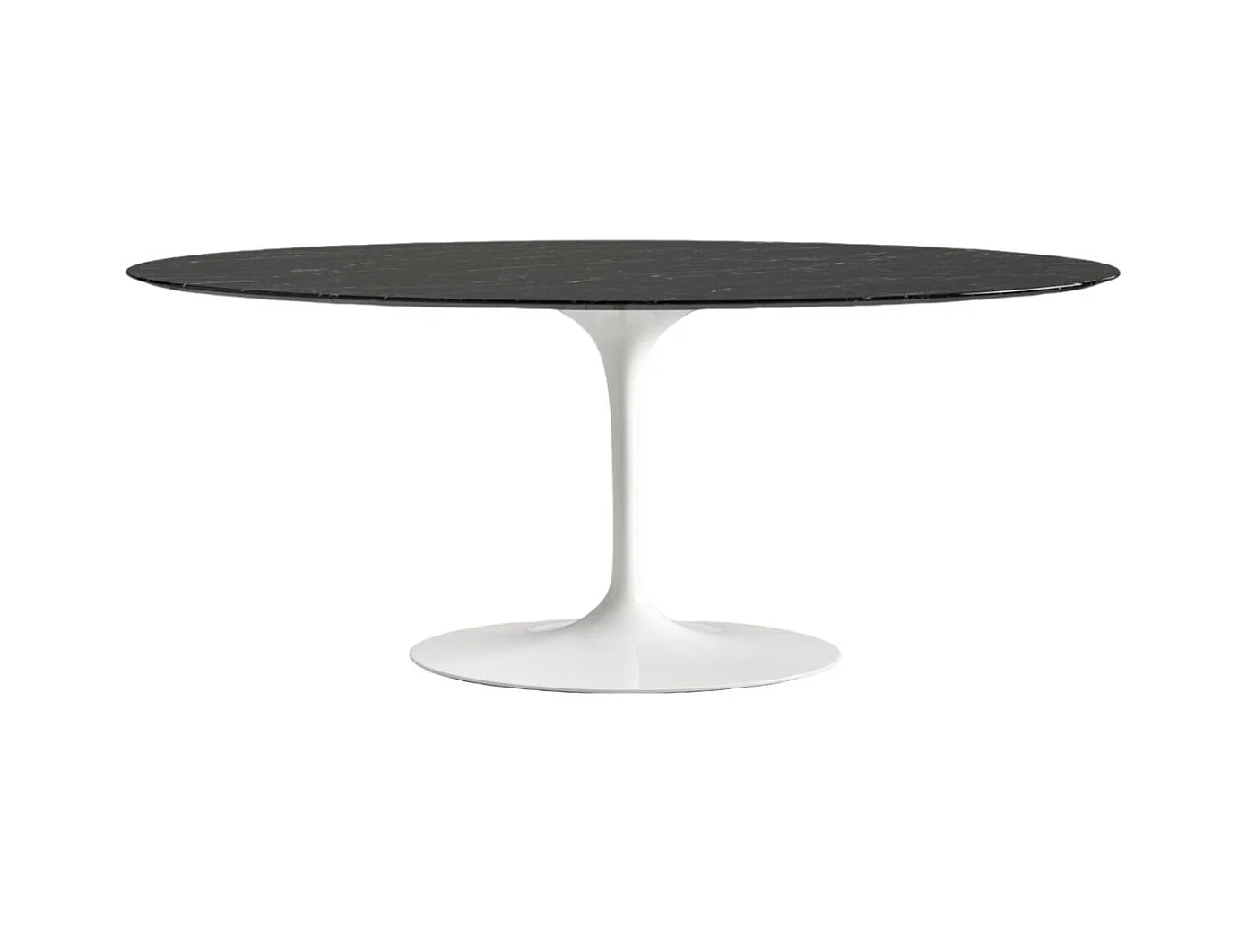 Table tulipe ovale en marbre Haute de gamme-Plateau Marbre noir Marquinia-Largeur 180 cm-Piètement Blanc mat