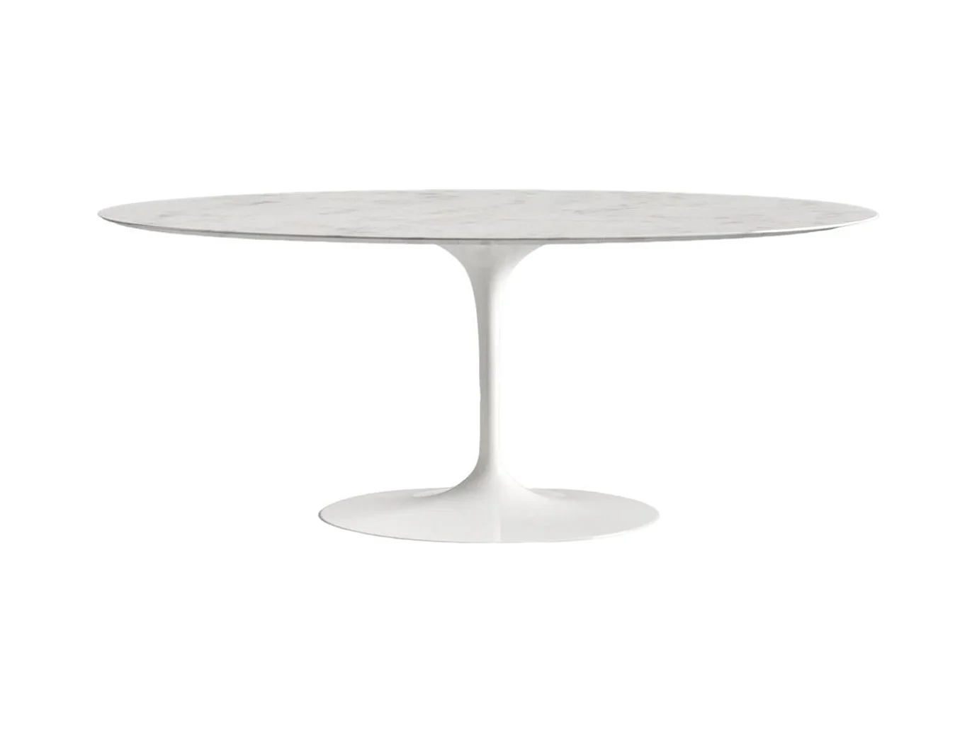 Table tulipe ovale en marbre Haute de gamme-Plateau Marbre blanc Carrara-Largeur 180 cm-Piètement Blanc mat