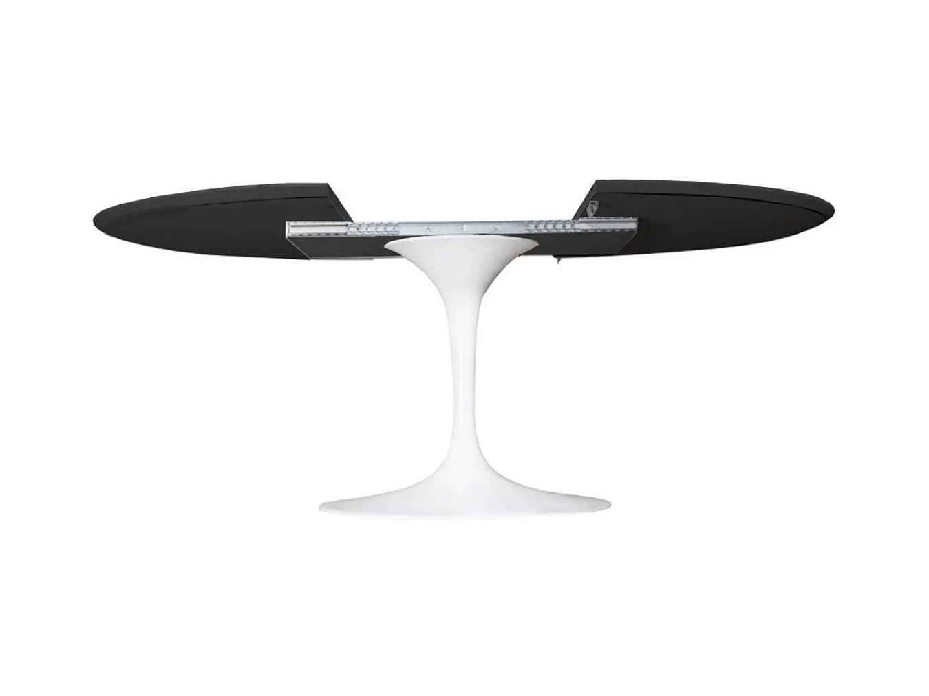 Table tulipe ovale extensible-Plateau Noir mat-Largeur 170/230 cm-Piètement Blanc brillant