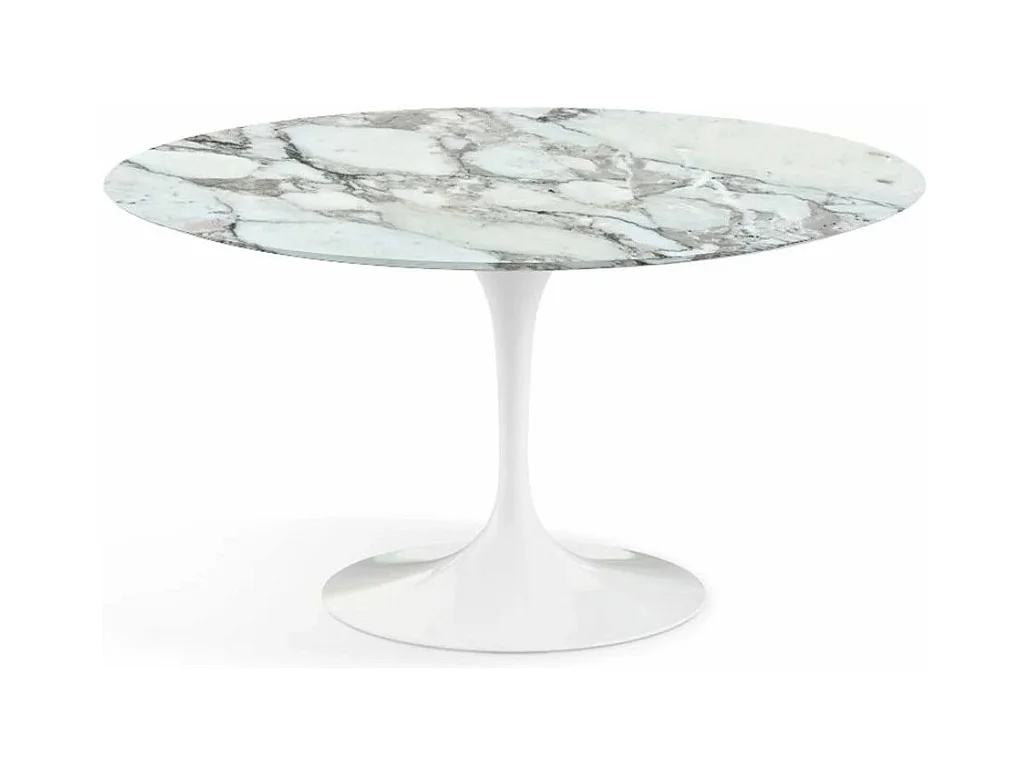 Table tulipe ronde en marbre-Plateau Marbre Arabescato-Diamètre 170 cm-Piètement Blanc mat