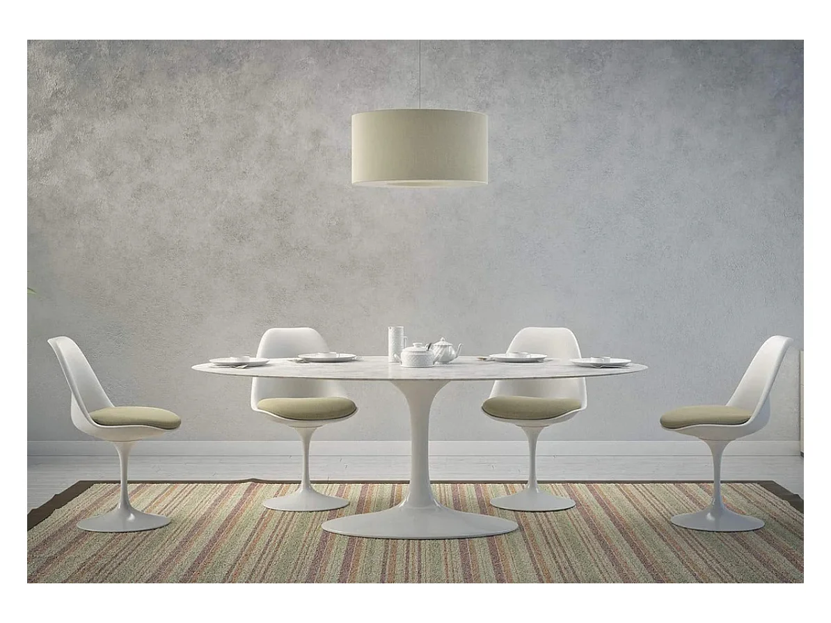 Table tulipe ronde en marbre-Plateau Marbre blanc Carrara-Diamètre 170 cm-Piètement Blanc brillant
