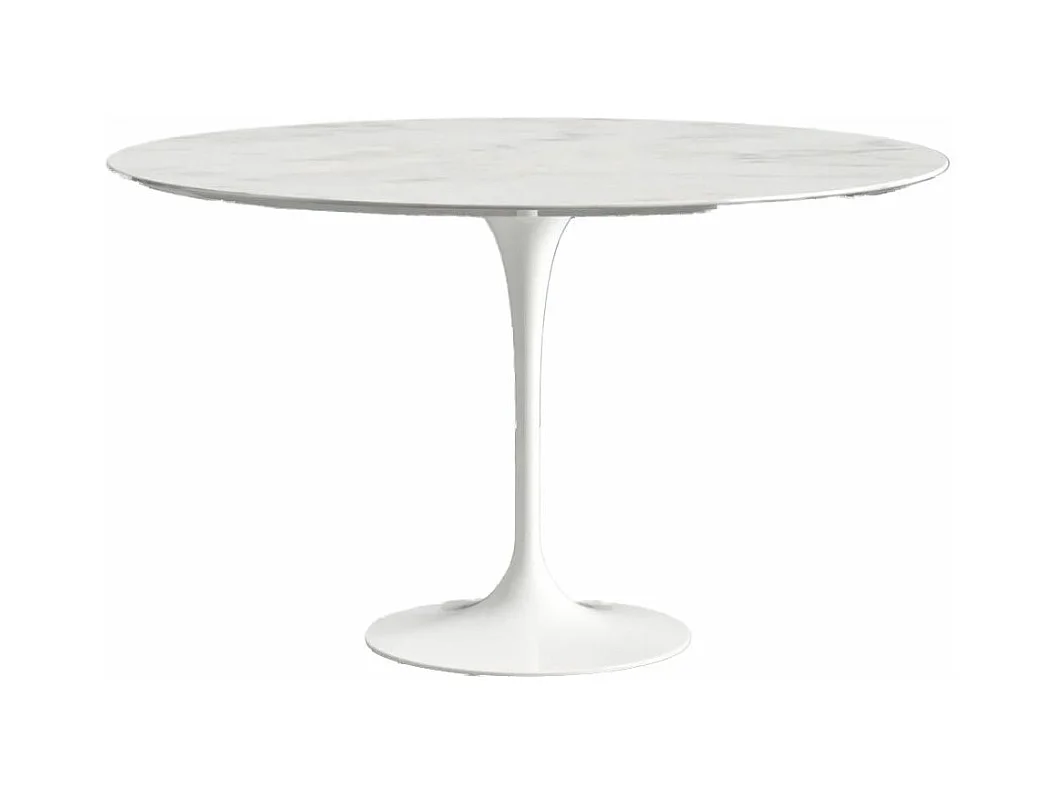 Table tulipe ronde en marbre-Plateau Marbre blanc Carrara-Diamètre 110 cm-Piètement Blanc brillant
