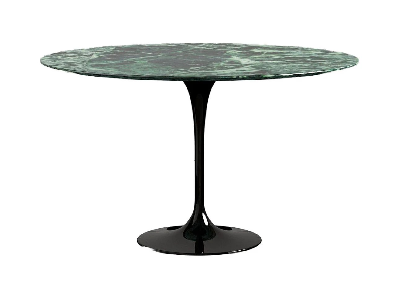 Table tulipe ronde en marbre-Plateau Marbre verde alpi-Diamètre 180 cm-Piètement Noir brillant
