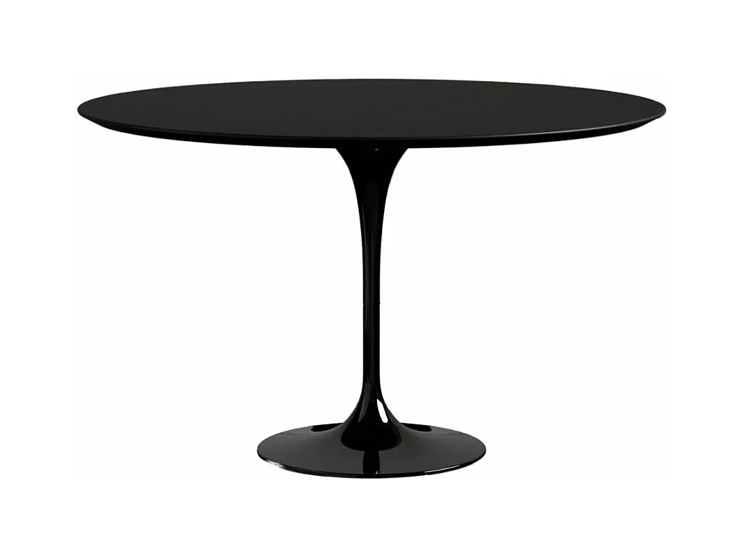 Table tulipe ronde-Plateau Noir mat-Diamètre 130 cm-Piètement Blanc mat
