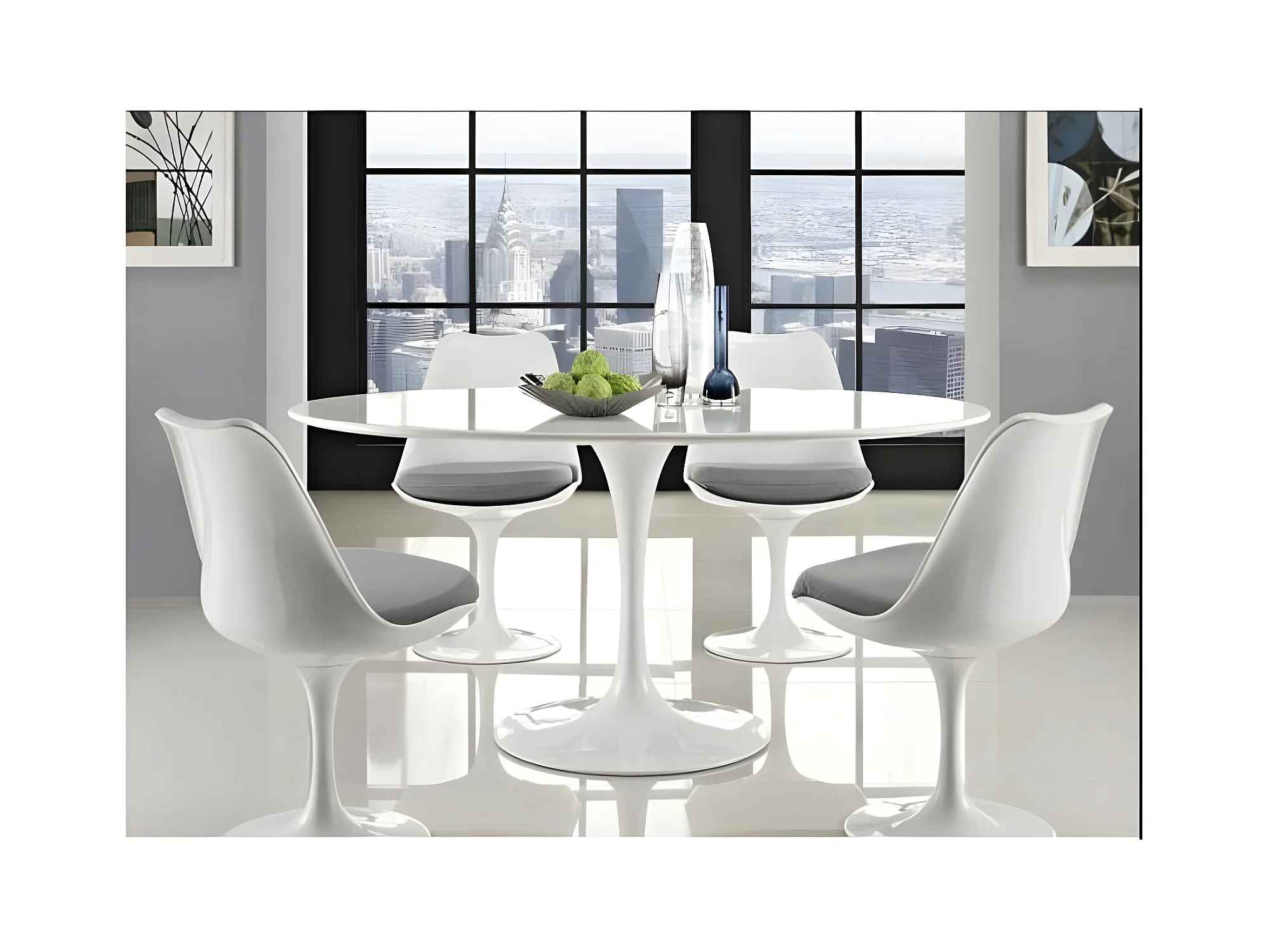Table tulipe ronde-Plateau Noir mat-Diamètre 180 cm-Piètement Noir mat
