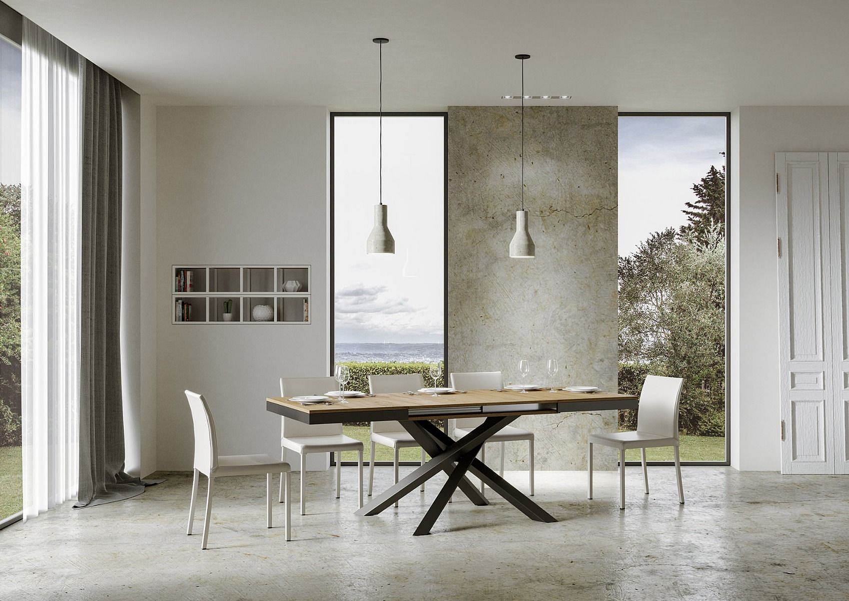 Table extensible 90x160/264 cm Tecno Premium Chêne Nature cadre Anthracite