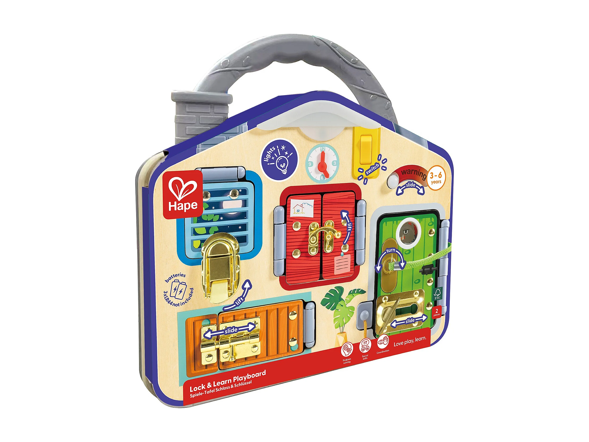 Tableau d'activités multi fermetures - 29,5 x 6 x 29 cm - À partir de 3 ans