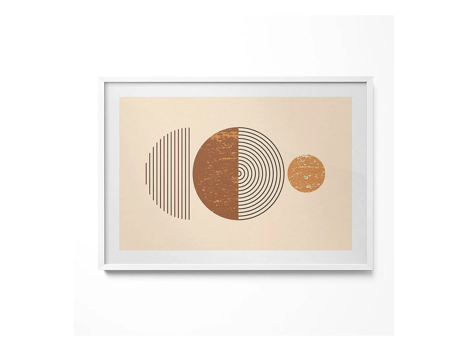 Tableau décoratif avec cadre blanc, Lignes et cercle d'art moderne 100 x 70 cm– Parfait pour le salon ou la chambre
