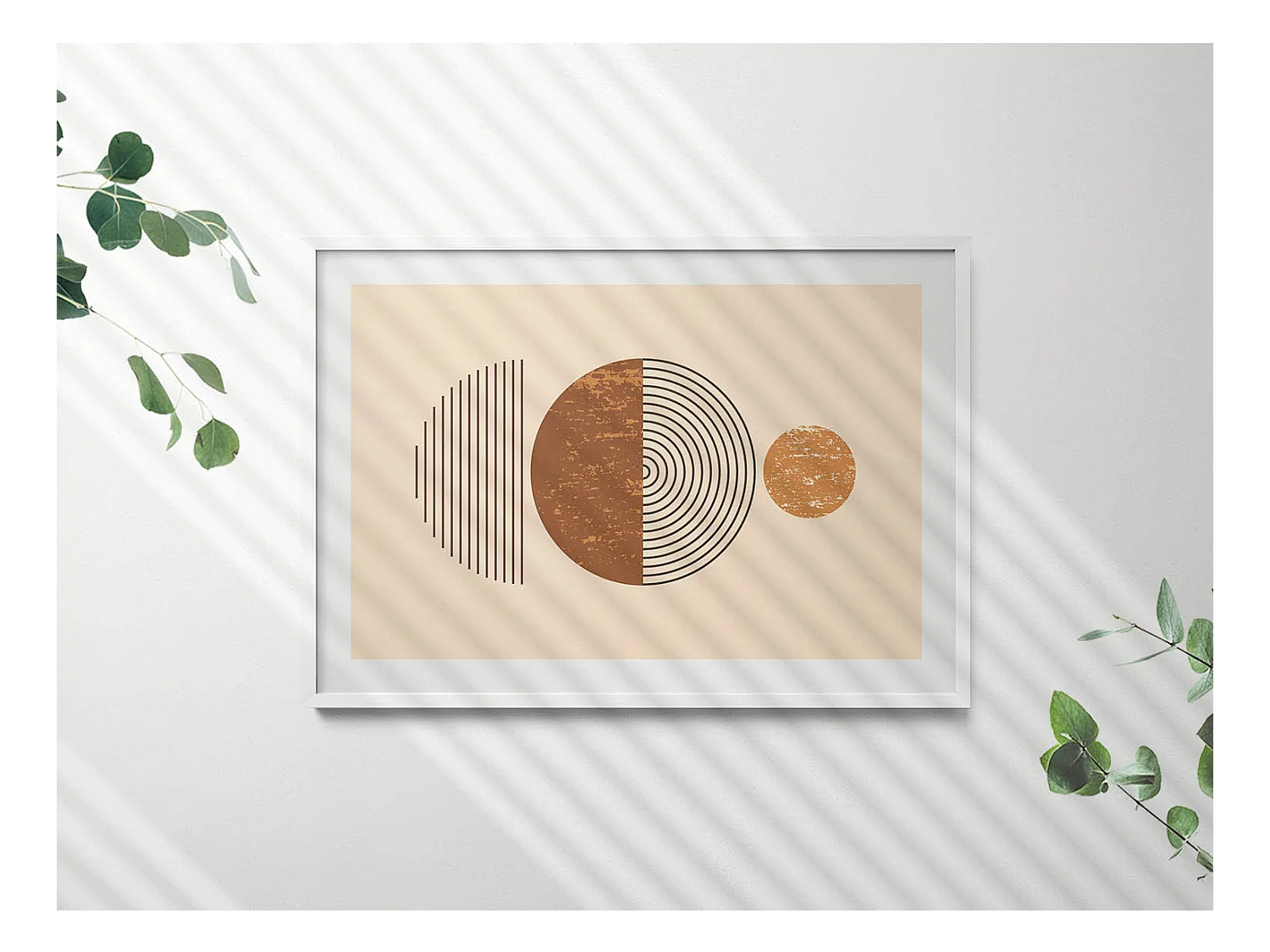Tableau décoratif avec cadre blanc, Composition bohème abstraite 100 x 70 cm– Parfait pour le salon ou la chambre