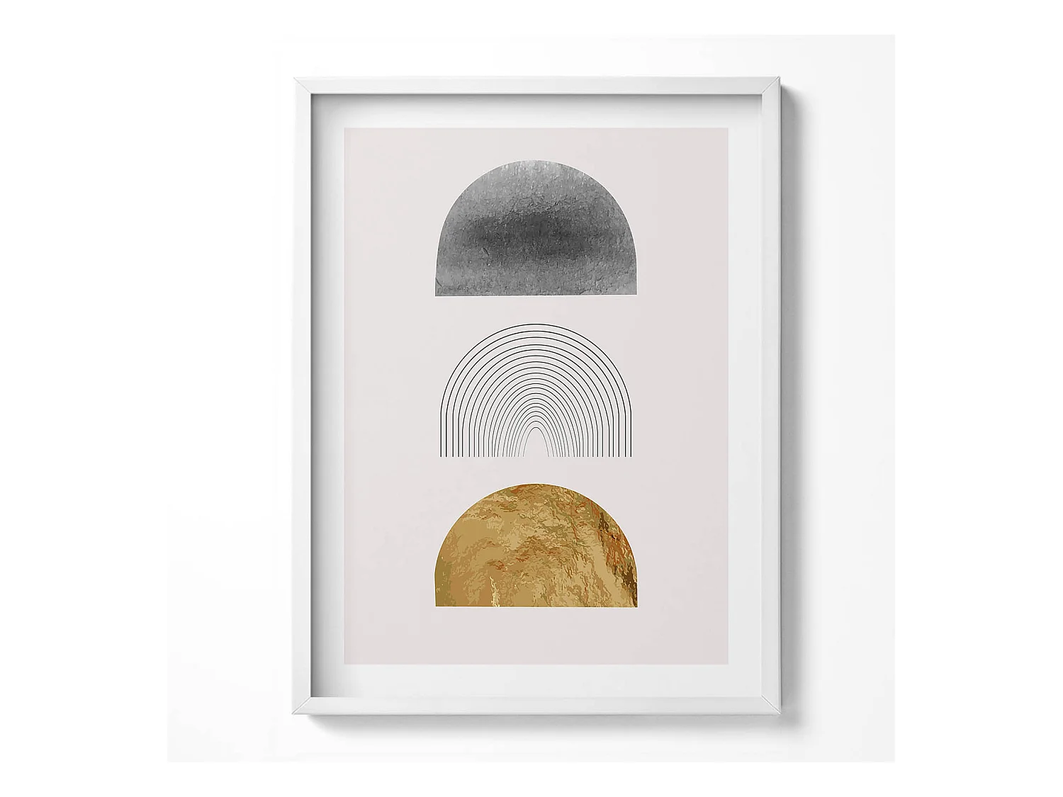 Tableau décoratif avec cadre blanc, Formes bohèmes avec de l'or 60 x 80 cm– Parfait pour le salon ou la chambre