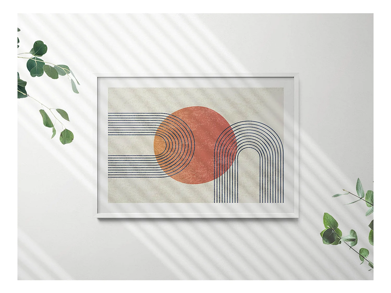 Tableau décoratif avec cadre blanc, Composition bohème abstraite 100 x 70 cm– Parfait pour le salon ou la chambre