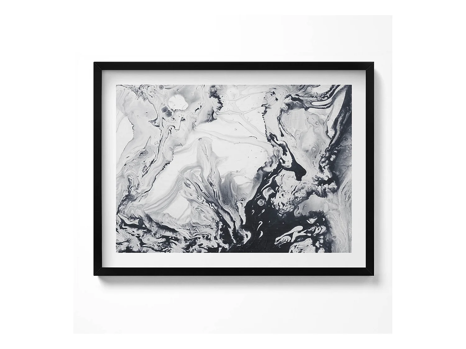 Tableau décoratif avec cadre noir, Abstraction d'encre - encre de marbre 80 x 60 cm– Parfait pour le salon ou la chambre