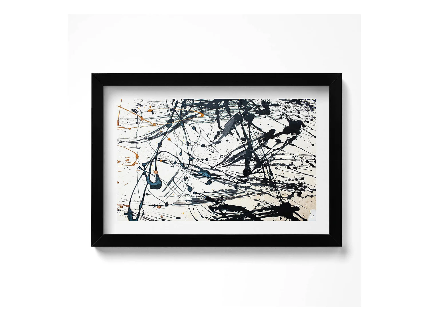 Tableau décoratif avec cadre noir, Abstraction minimaliste avec détails dorés 30 x 20 cm – Parfait pour le salon ou la chambre