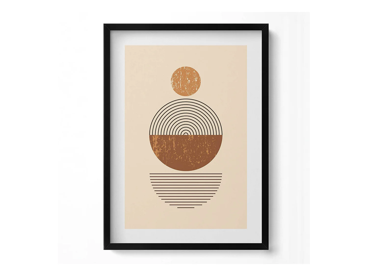 Tableau décoratif avec cadre noir, Lignes et cercle d'art moderne 50 x 70 cm– Parfait pour le salon ou la chambre