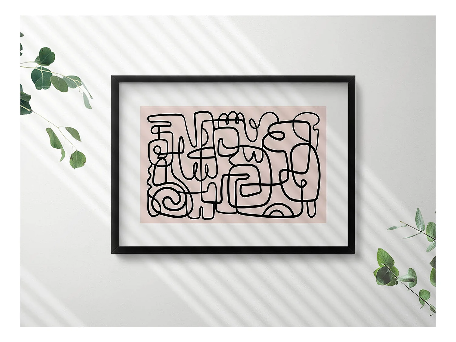 Tableau décoratif avec cadre noir, Composition bohème abstraite 70 x 50 cm– Parfait pour le salon ou la chambre