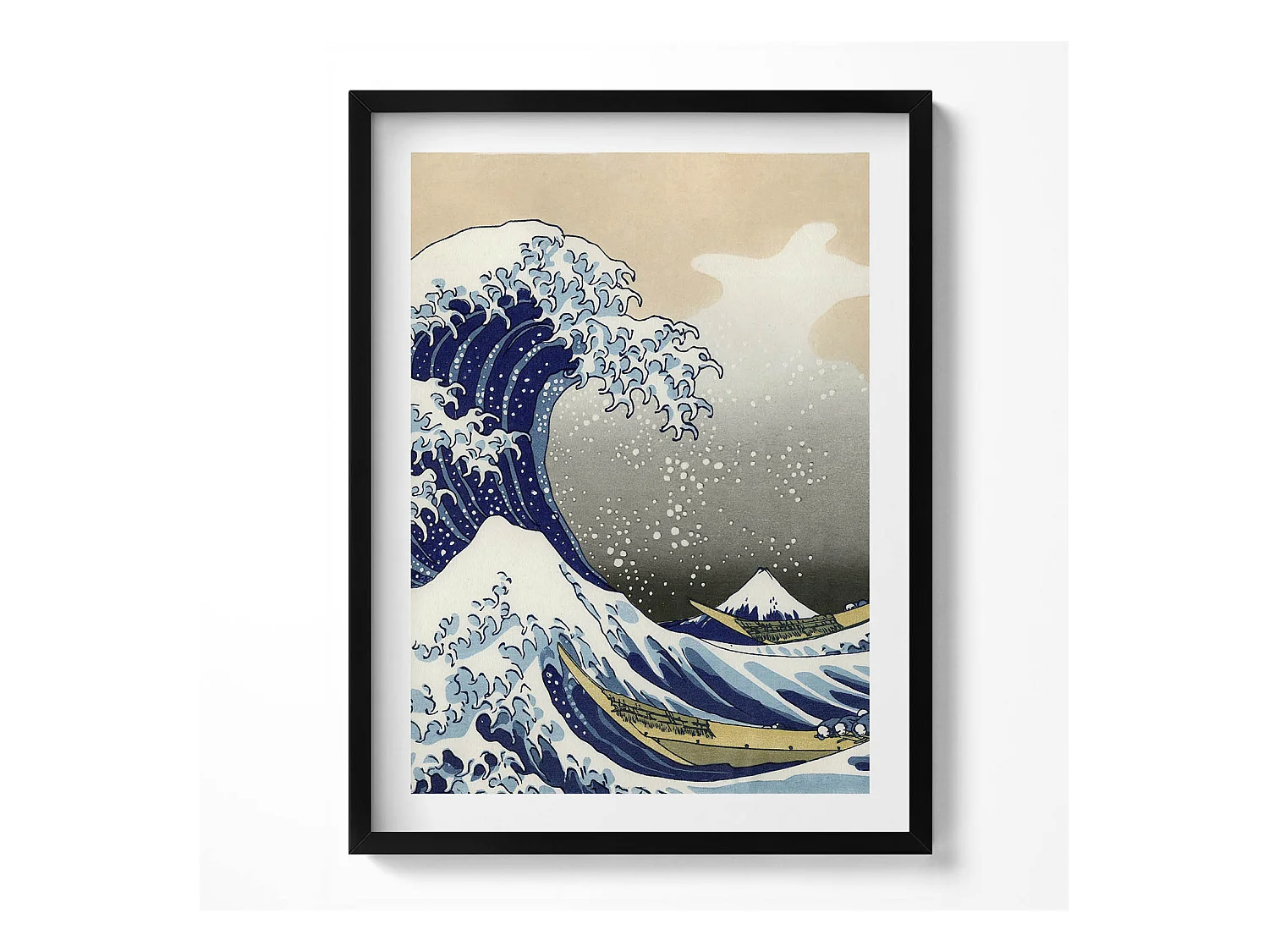 Tableau décoratif avec cadre noir, Grosse vague à Kanagawa 60 x 80 cm– Parfait pour le salon ou la chambre