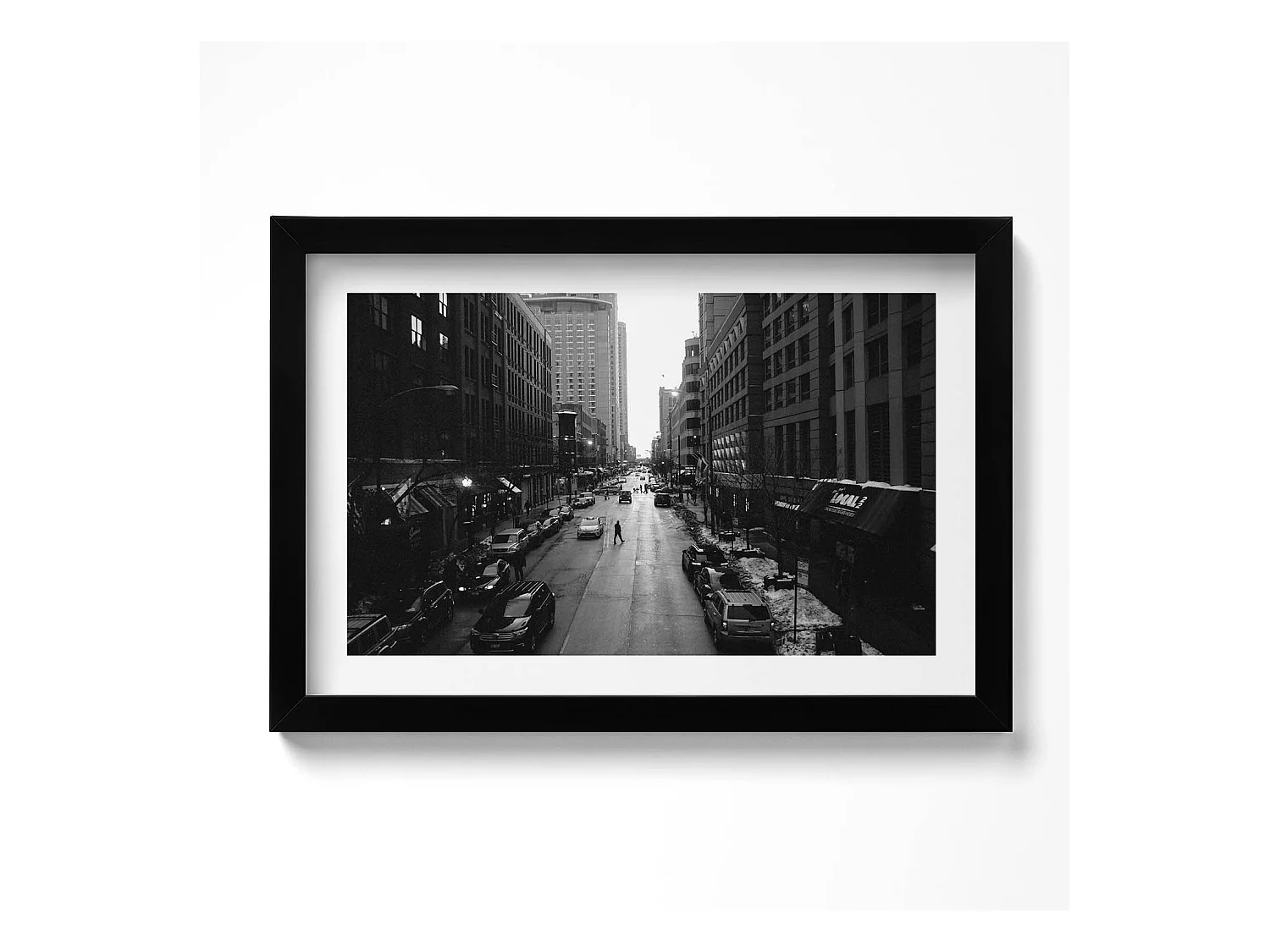 Tableau décoratif avec cadre blanc, Rues noires et blanches de Chicago 30 x 20 cm – Parfait pour le salon ou la chambre