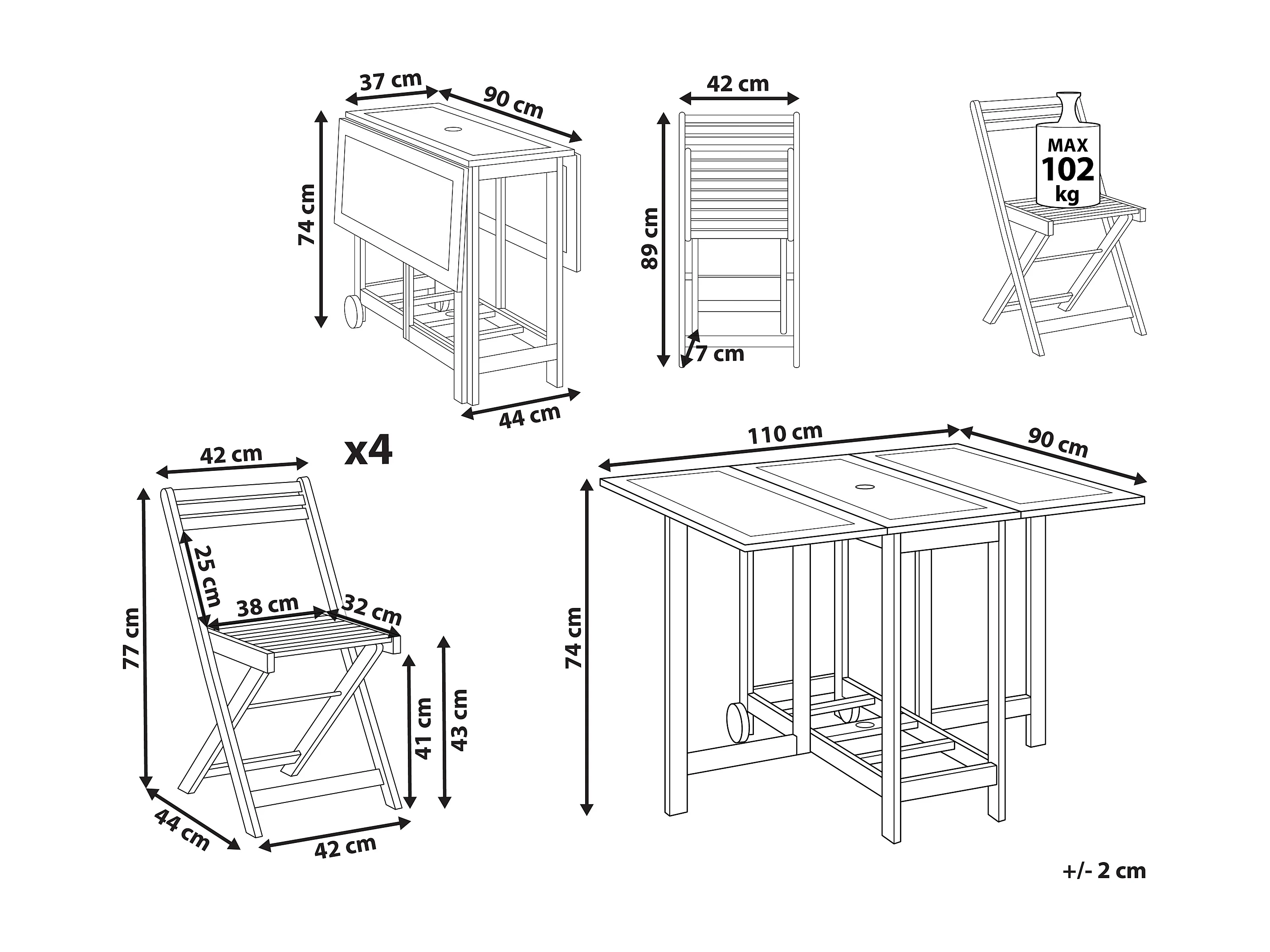 Salle à manger de jardin 4 places FRASSINE Acacia Marron