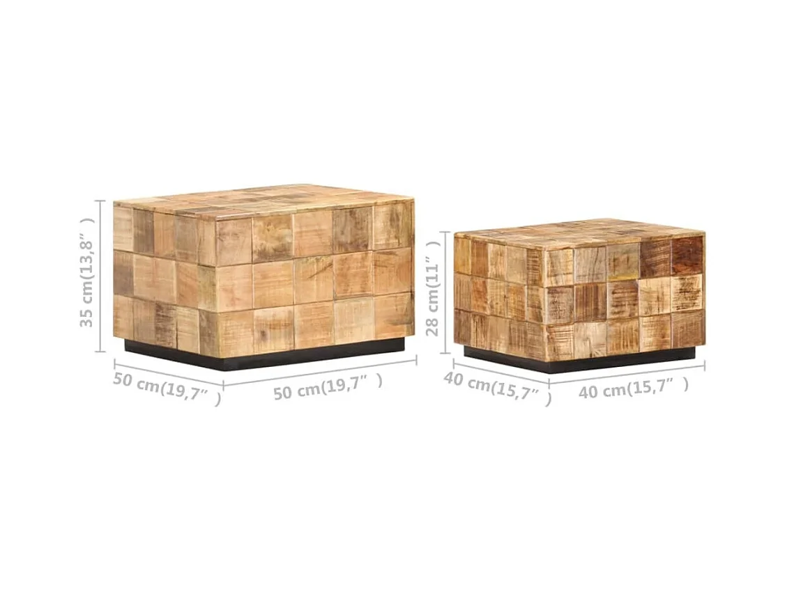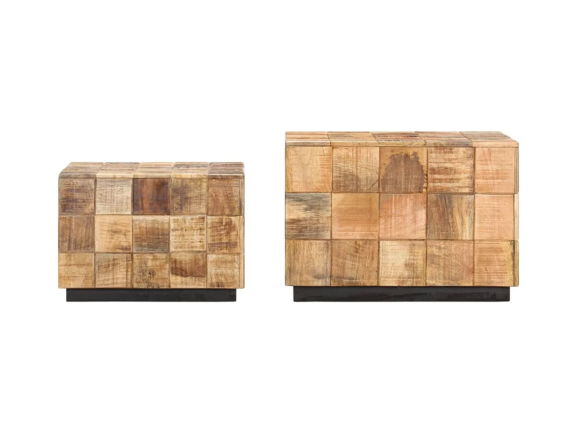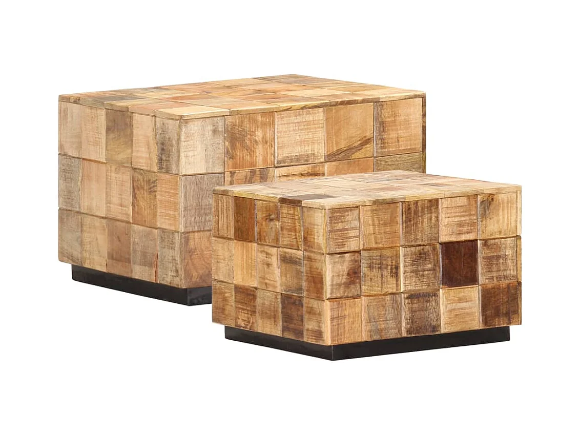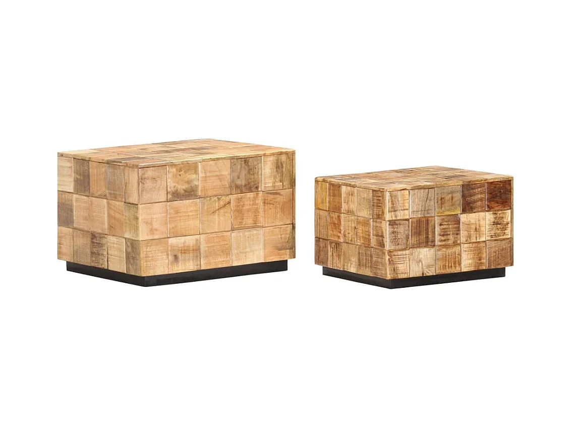 Tables basses 2 pcs avec design de blocs Bois de manguier brut
