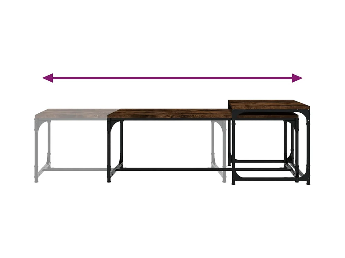 Tables d'appoint 3 pcs en bois d'ingénierie chêne fumé
