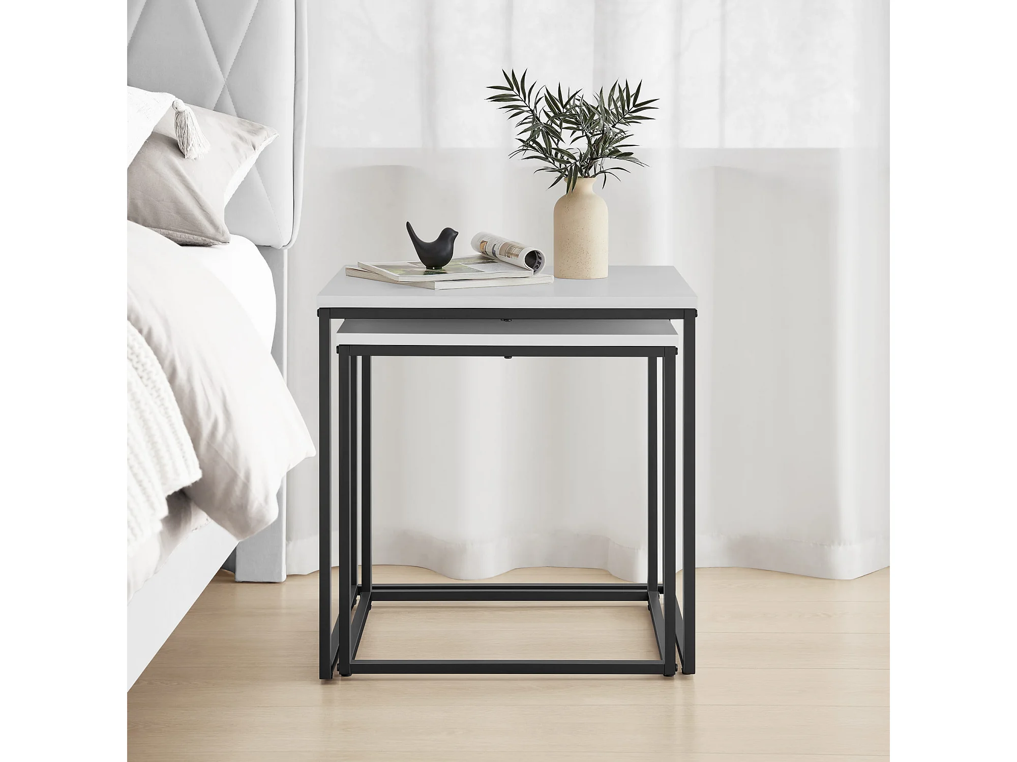 Tables basses carrées Valora, lot de 2 | Plateau blanc et cadre en acier noir