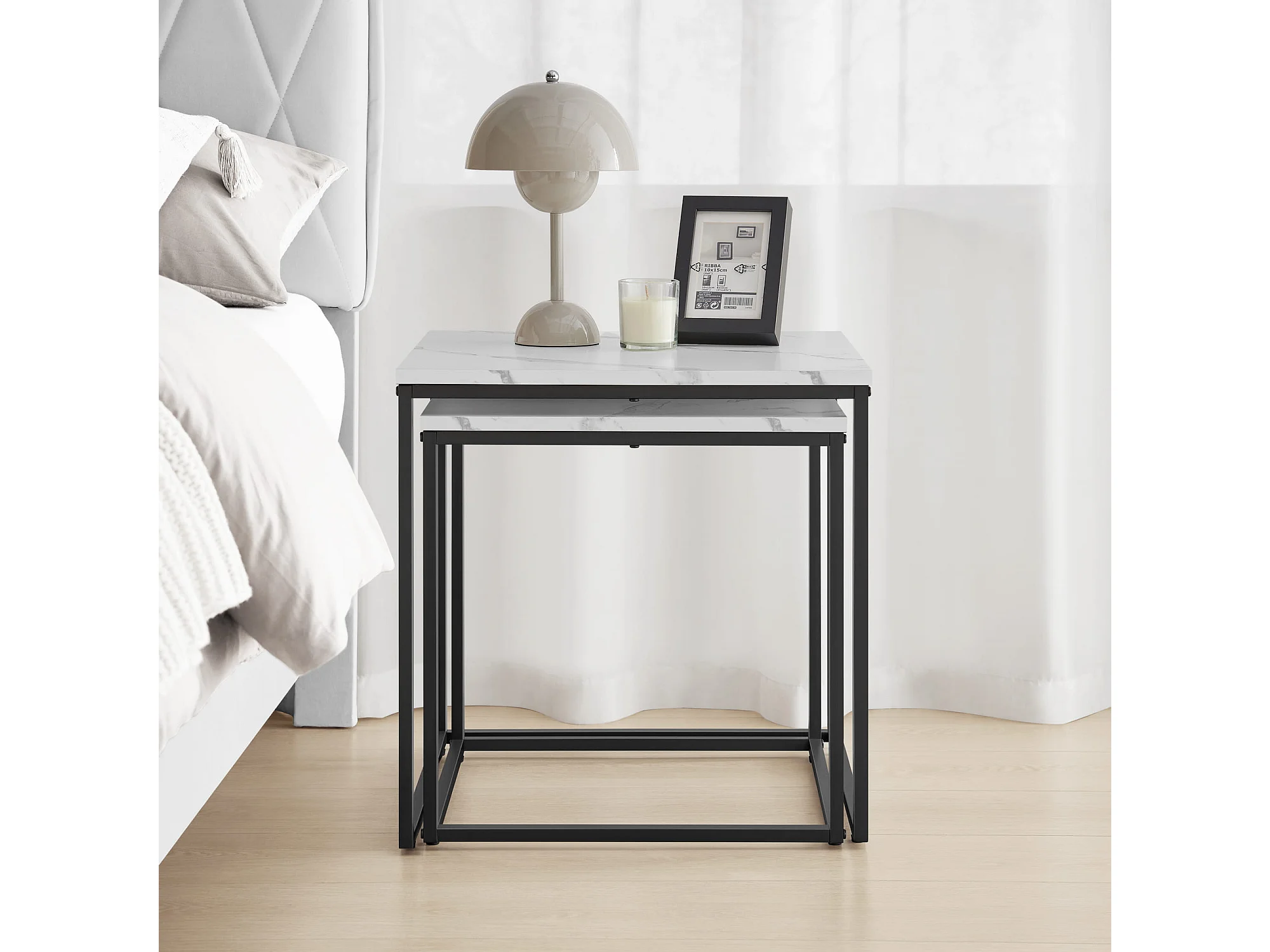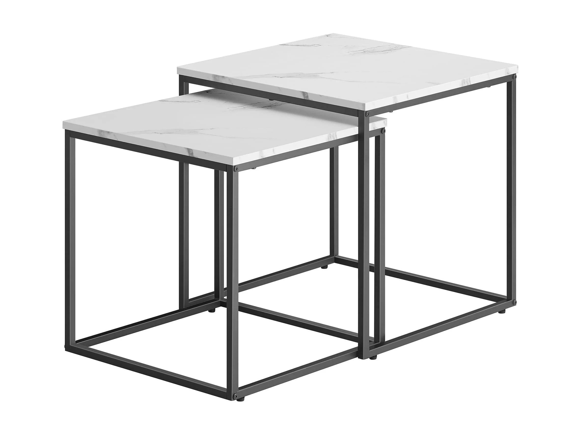 Tables basses carrées Valora, lot de 2 | Plateau en marbre et cadre en acier noir