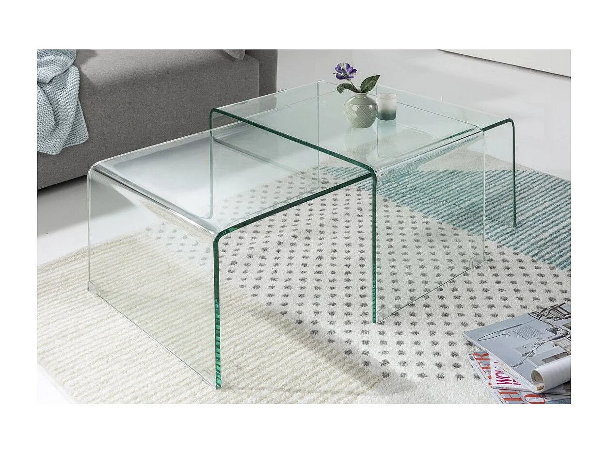Tables basses empilables HOLOW – Lot de 2 tables basses design en verre trempé