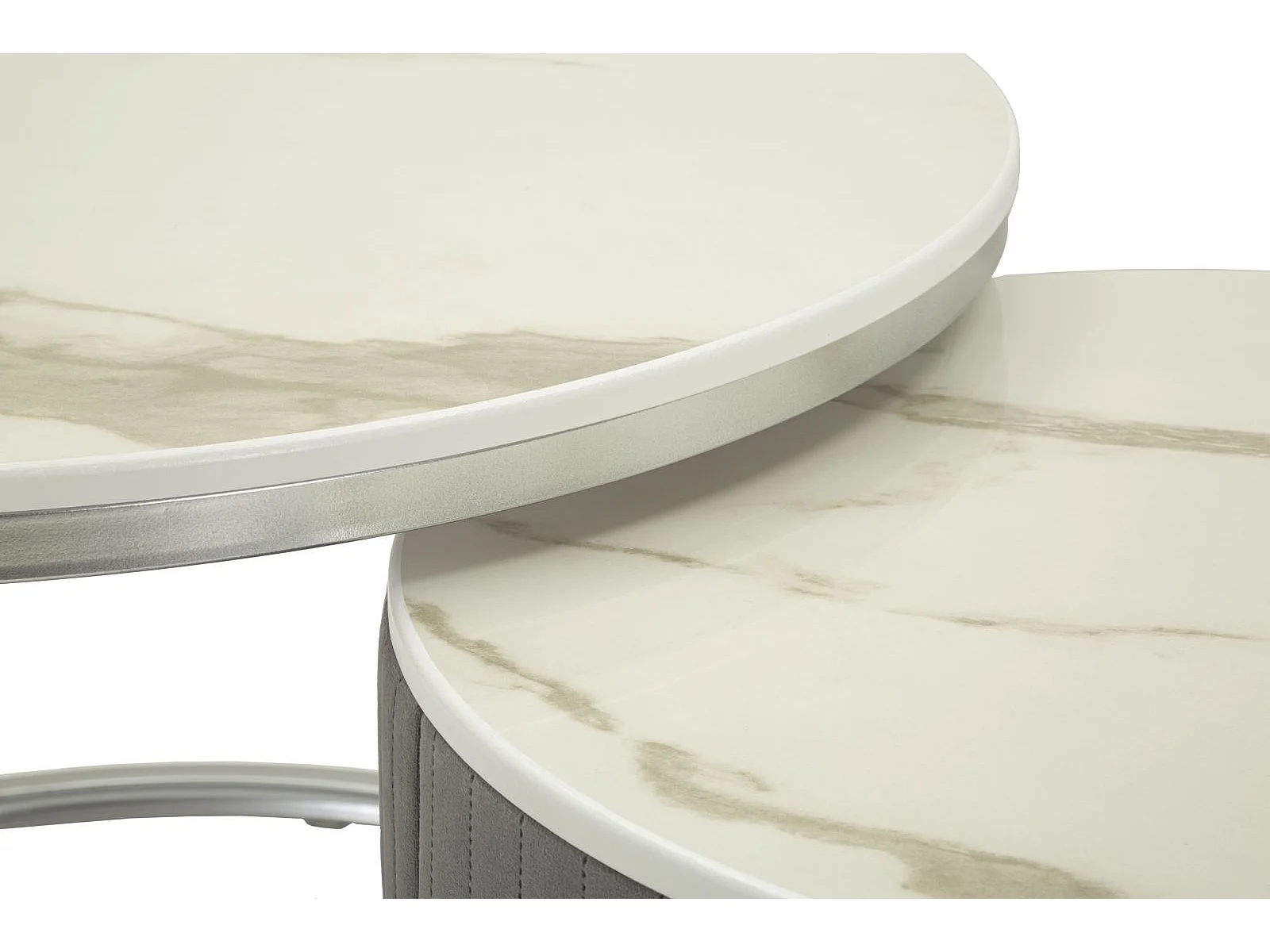 Tables basses en velours et métal, paire, ø 70x45-50x40 cm