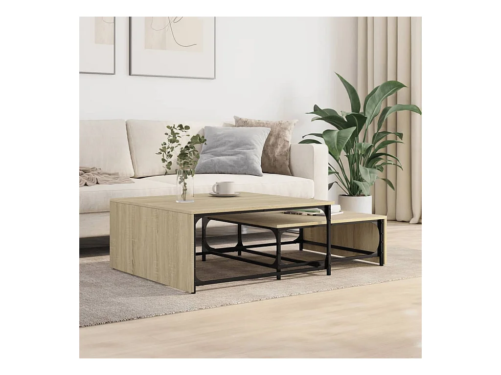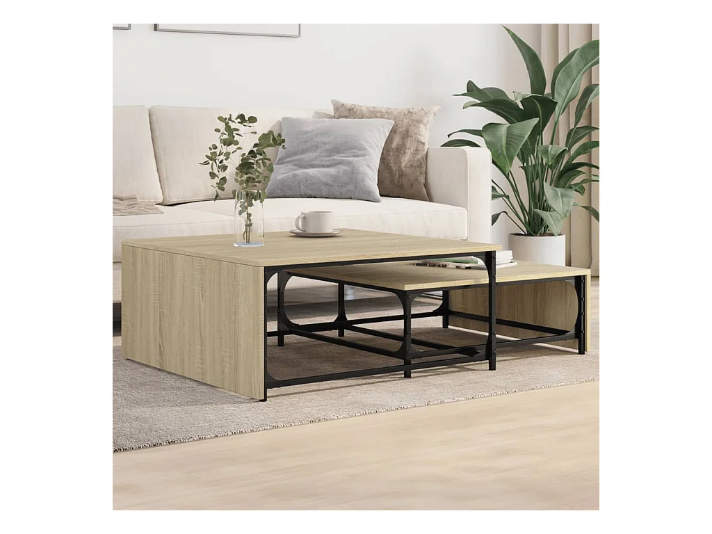 Tables basses gigognes 2 pcs chêne sonoma bois ingénierie métal FR768911