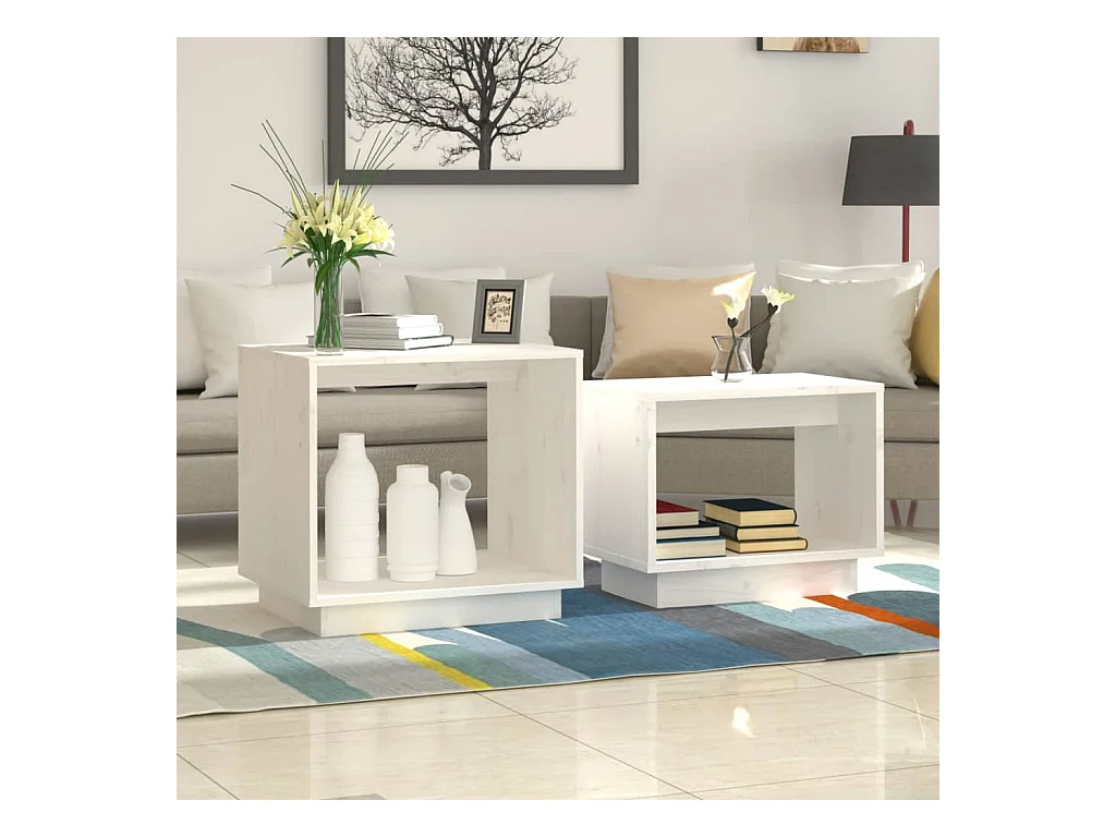 Ensemble de tables basses 2 pièces Blanc Bois massif de pin