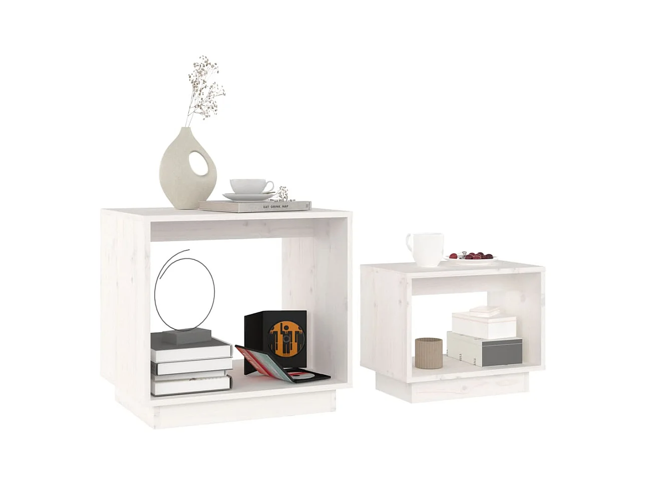 Tables basses gigognes 2 pièces Blanc Bois de pin massif