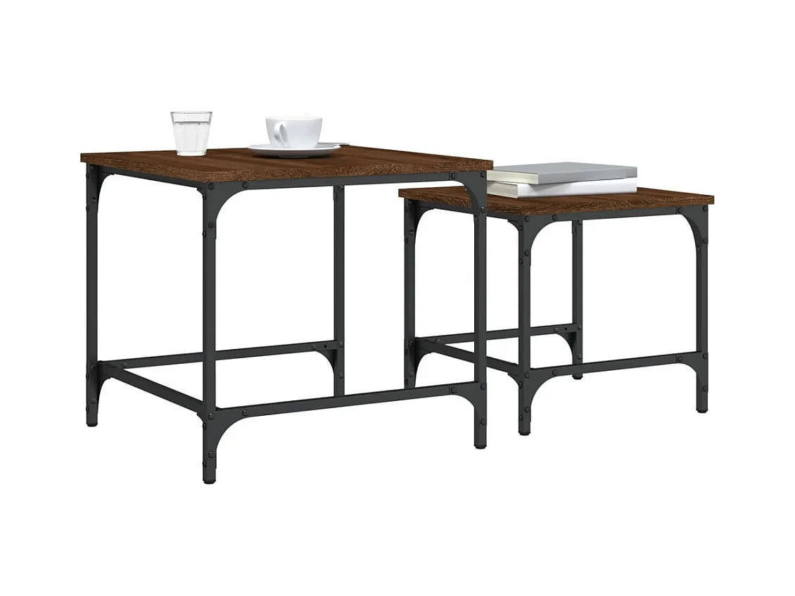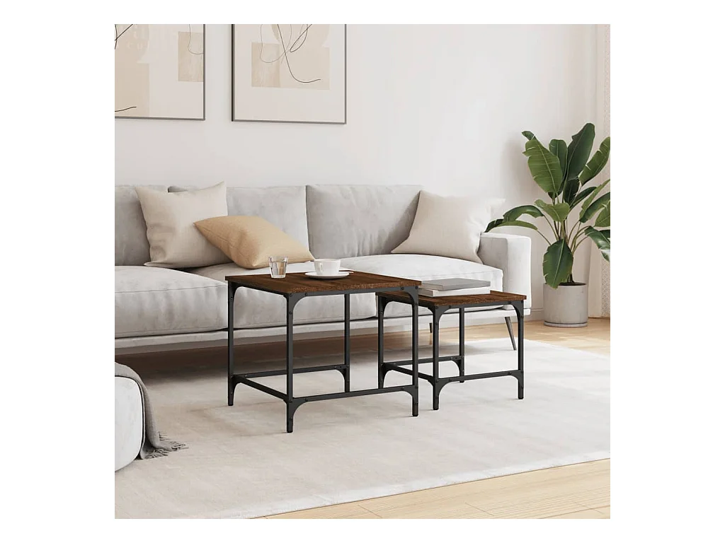 Tables basses gigognes 2 pièces chêne marron bois d'ingénierie