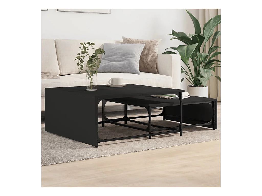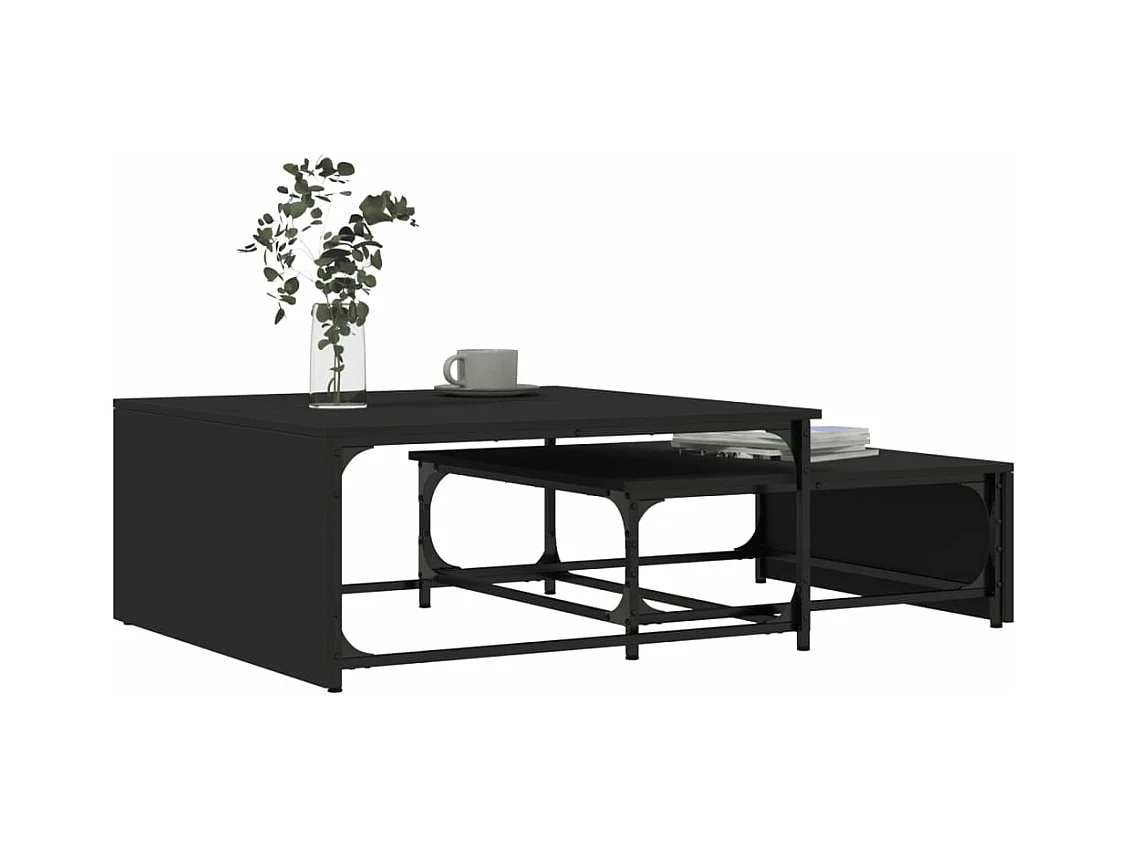 Tables basses gigognes 2 pièces noir bois d'ingénierie et métal