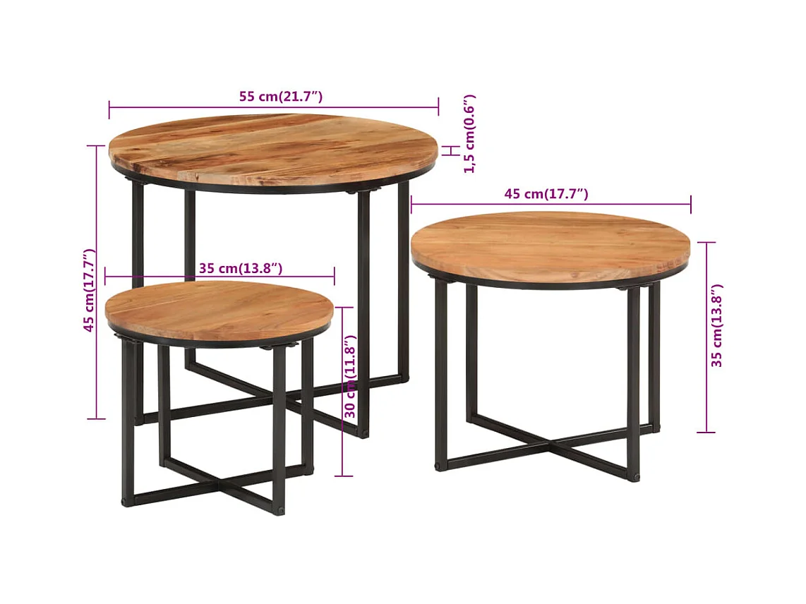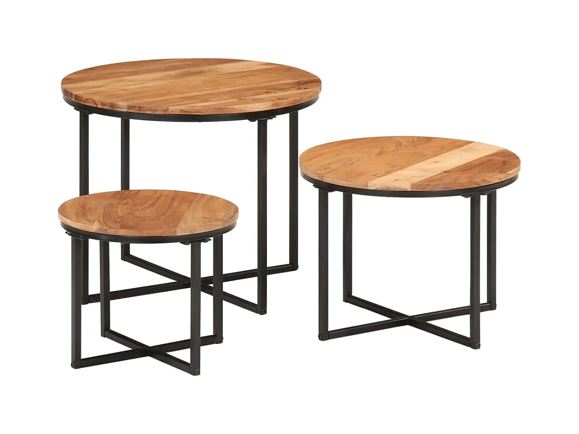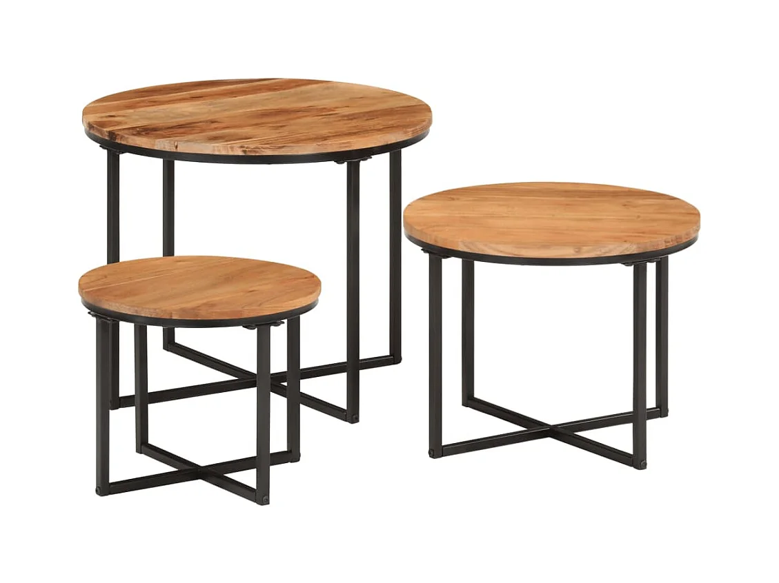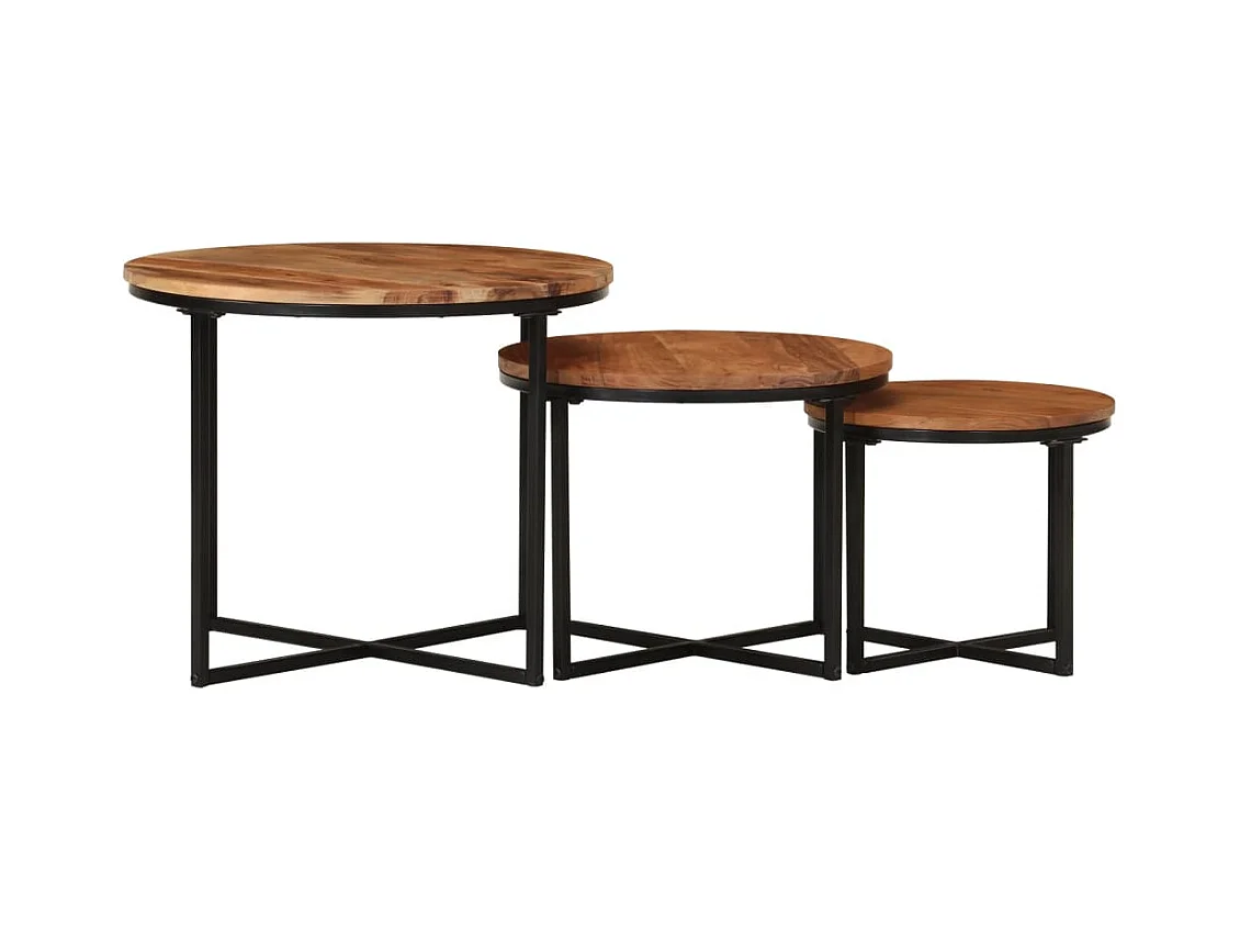 Tables basses gigognes 3 pcs bois massif d'acacia et fer