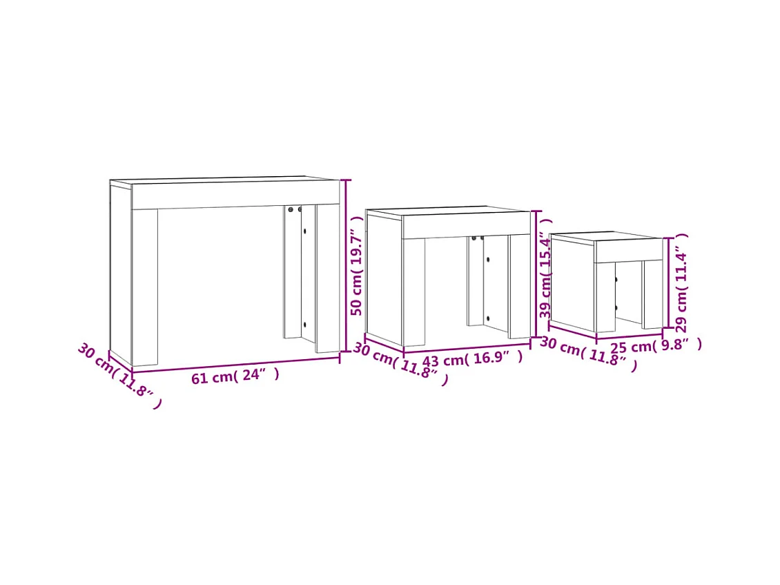 Tables basses gigognes 3 pcs chêne sonoma bois d'ingénierie