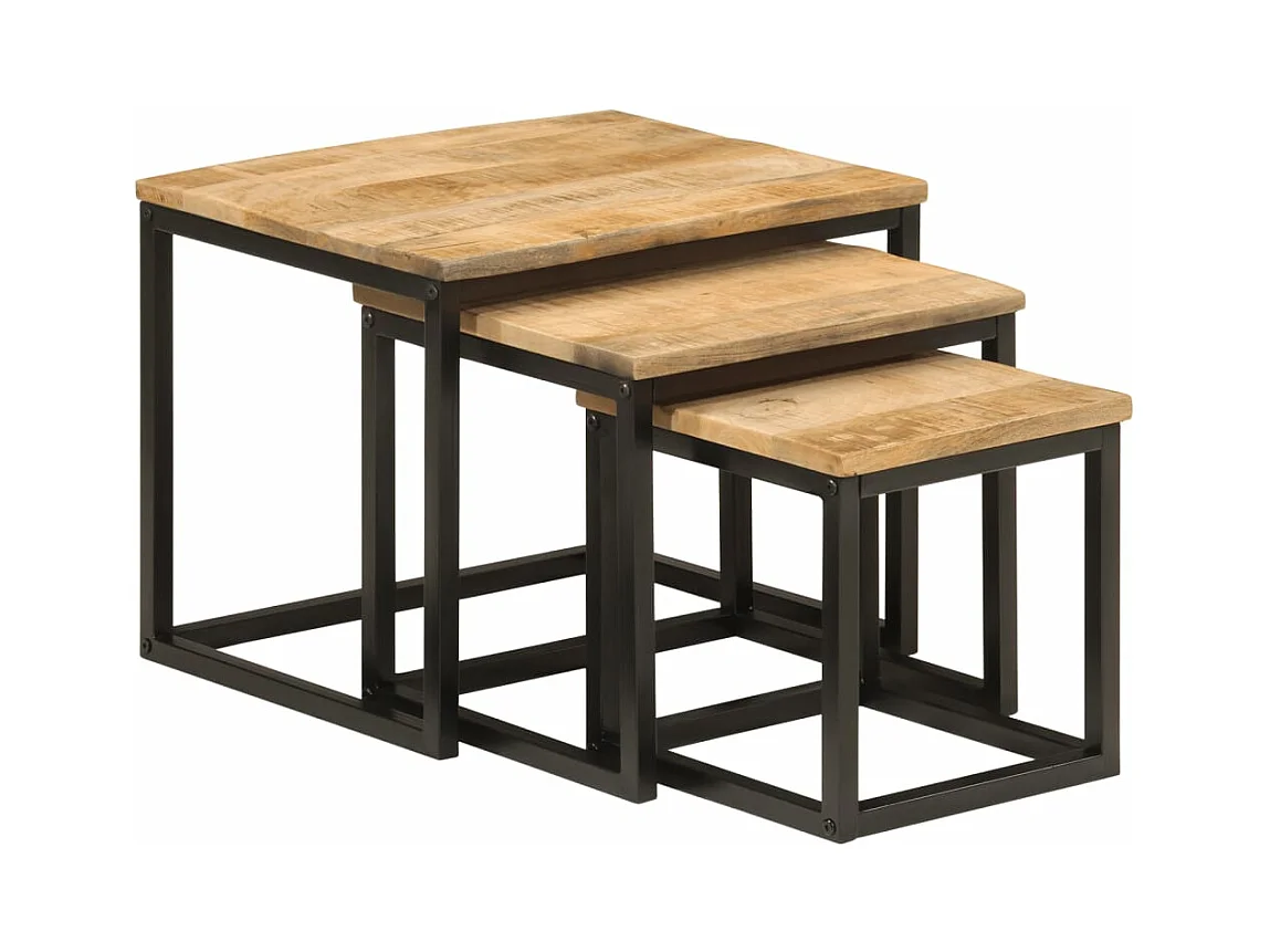 Table Gigogne 3 pièces Bois de mangue solide rugueux et un métal