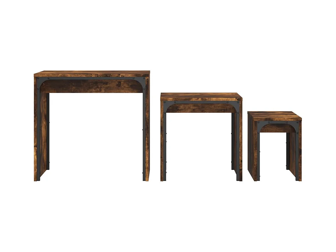 Tables basses gigognes 3 pièces chêne fumé bois d'ingénierie SHL89194