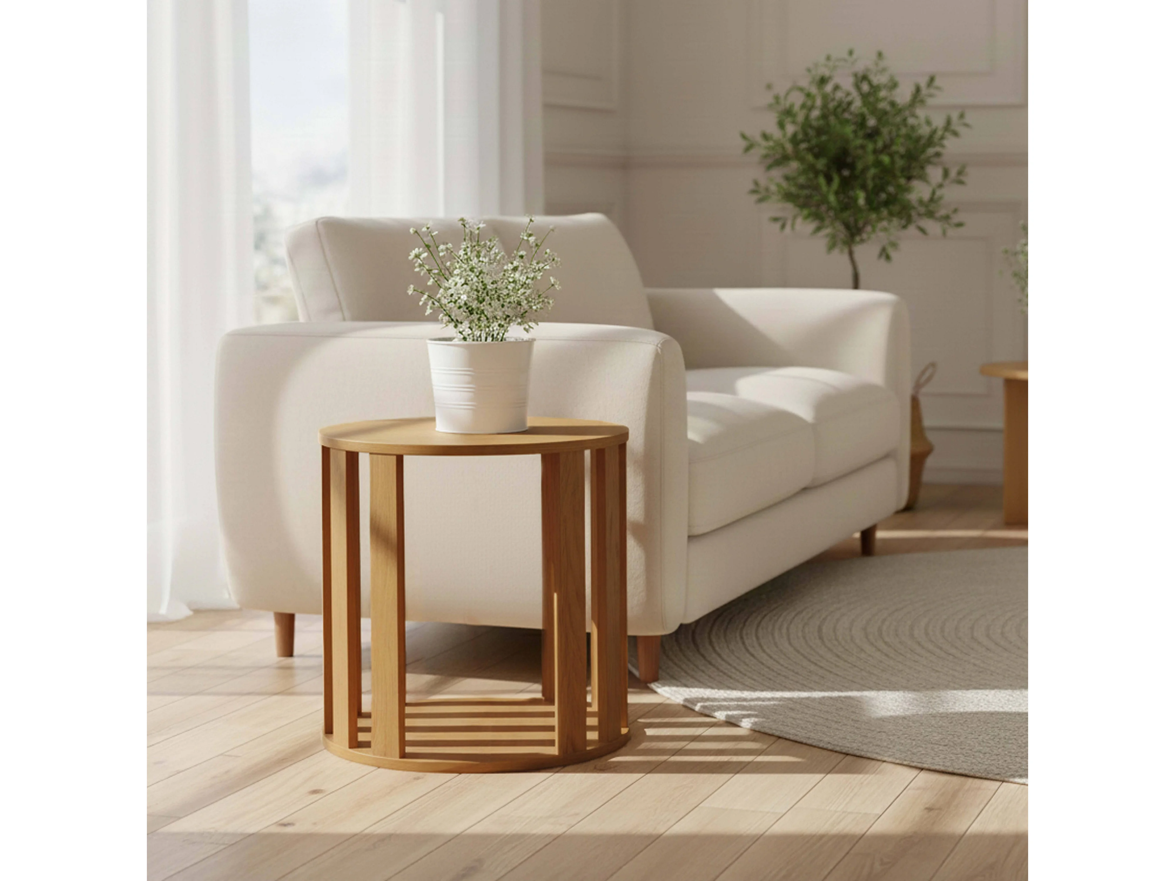 Tables basses gigognes effet bois ronde Ø50 et Ø75 cm bois clair