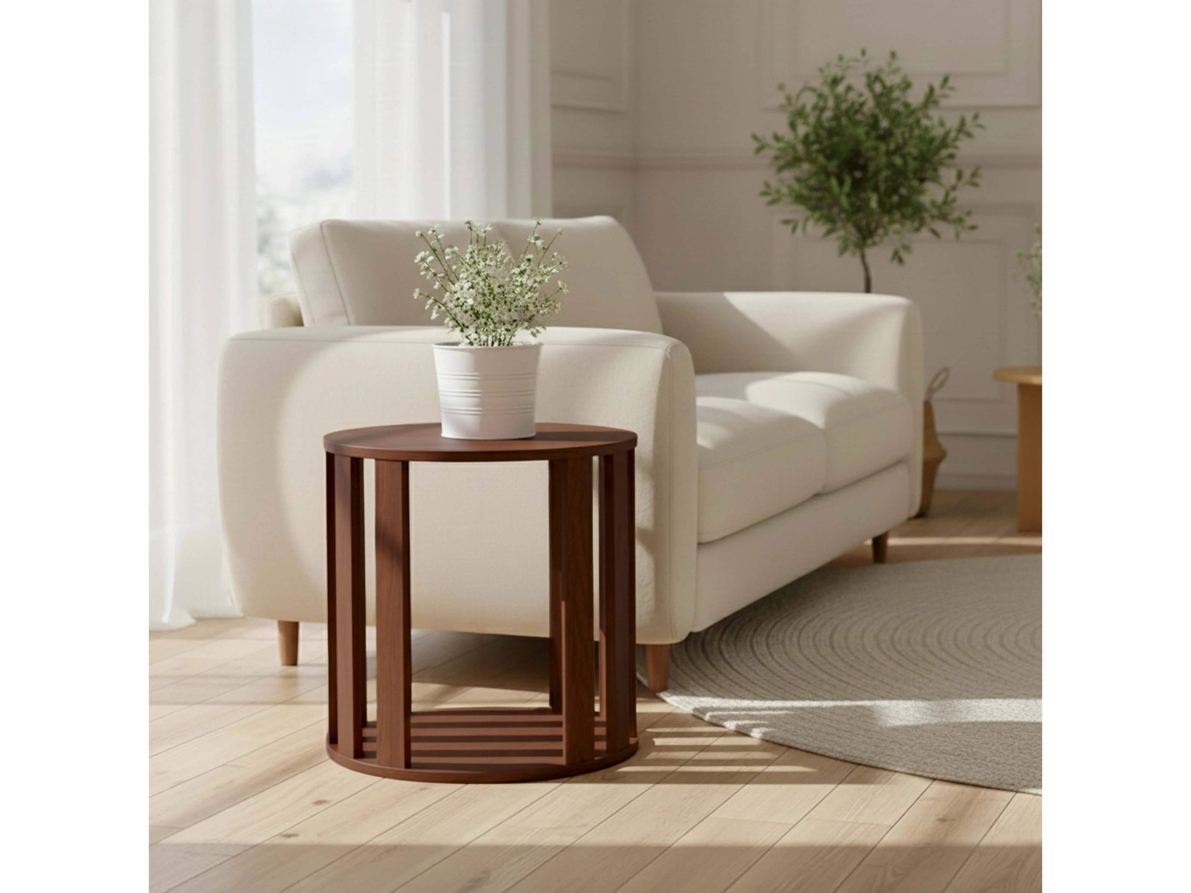Tables basses gigognes effet bois ronde Ø50 et Ø75 cm bois foncé