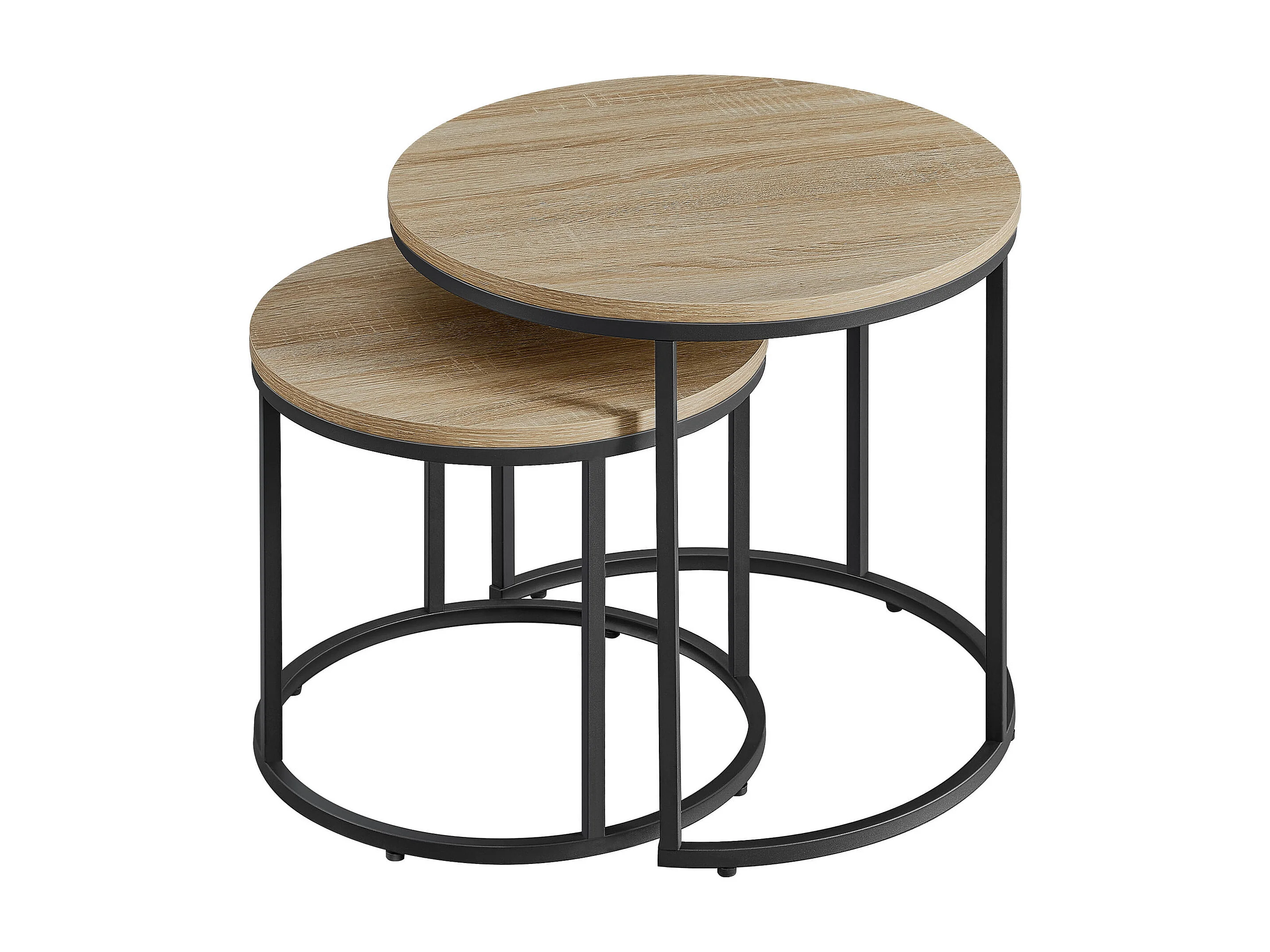 Tables basses rondes Valora, lot de 2 – Plateau en chêne Sonoma et pieds noirs