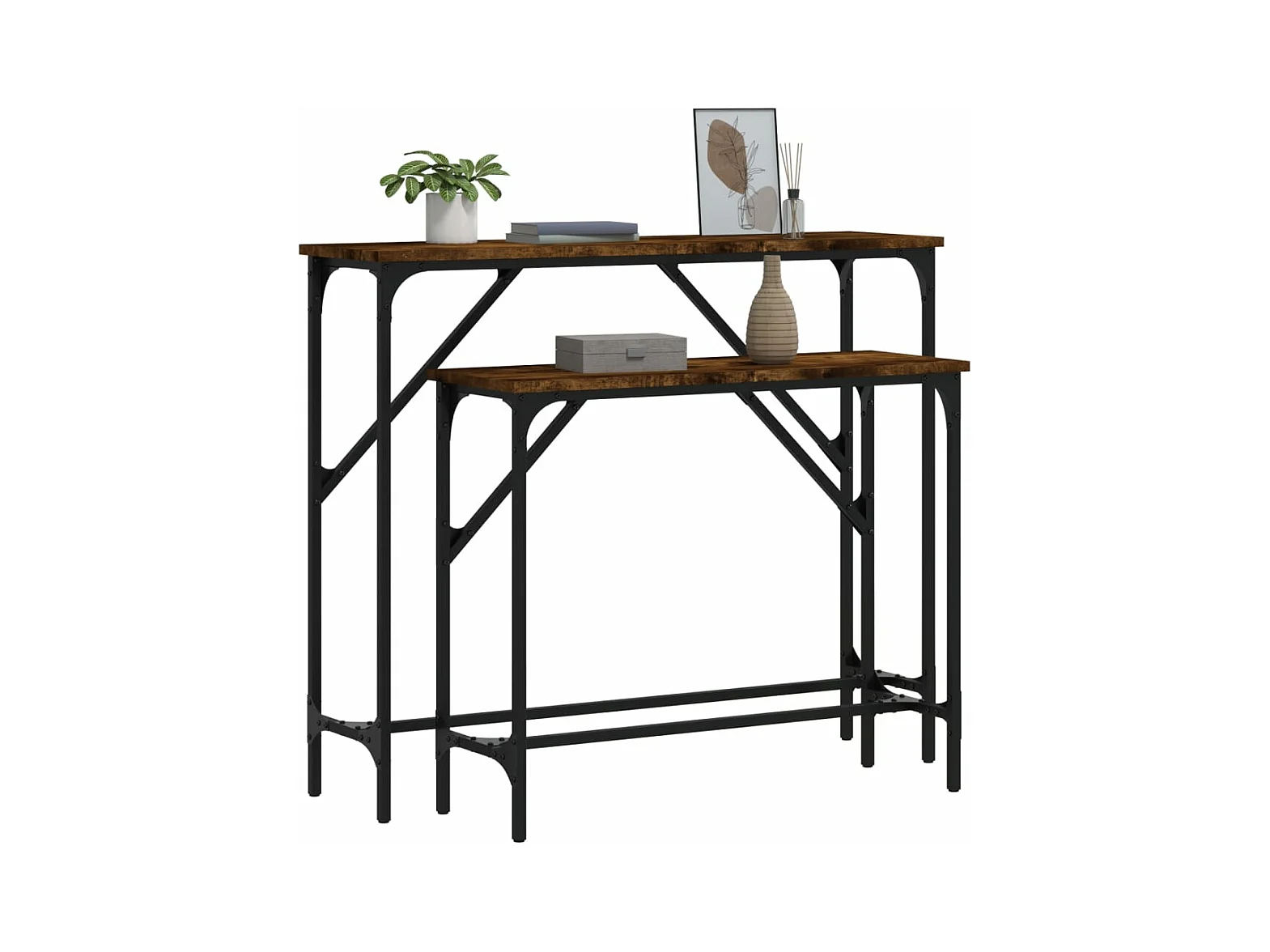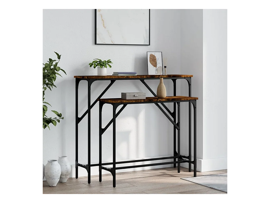 Tables console 2 pièces chêne fumé bois d'ingénierie