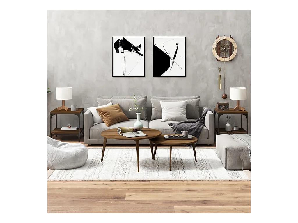 Tables d'appoint 3 pcs en bois d'ingénierie chêne fumé