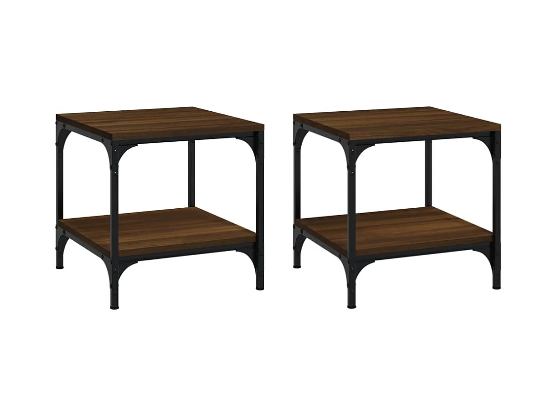 Tables basses avec pieds en métal 2 pcs Chêne marron 50x50x40cm