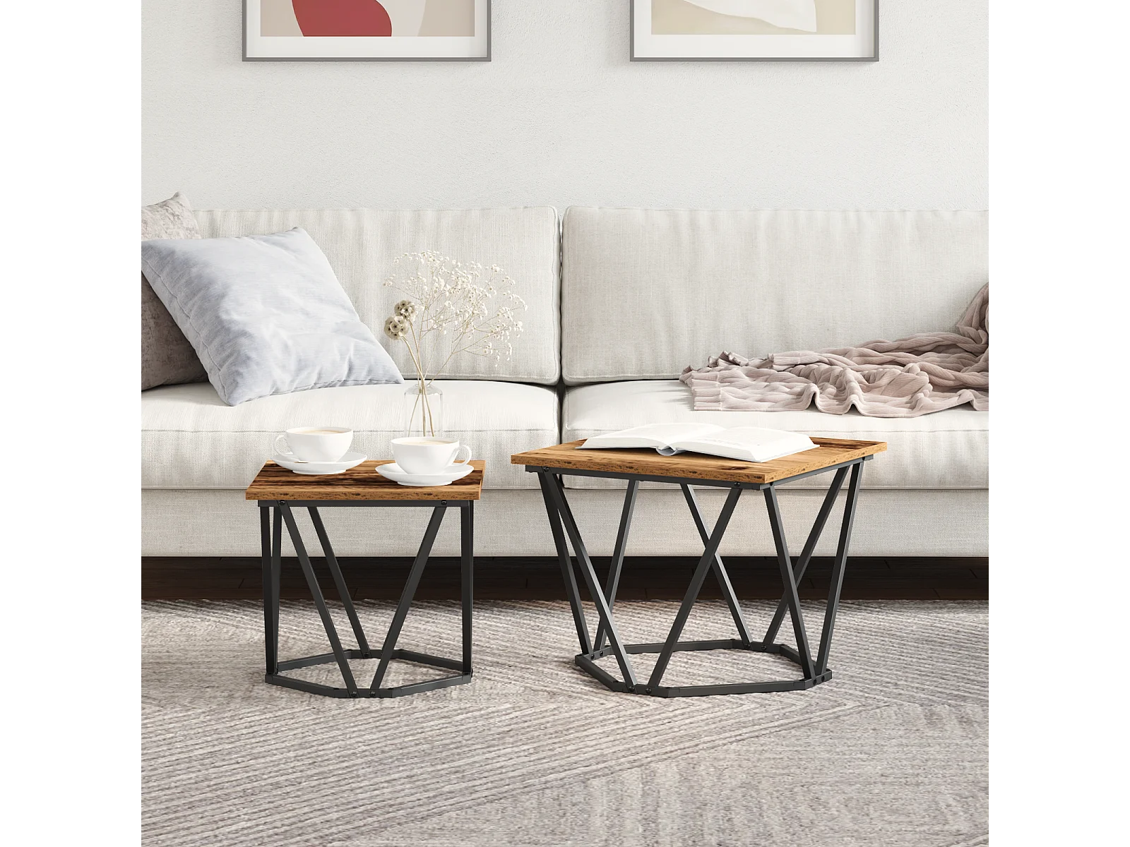 Tables d'appoint 2 pcs en bois ancien et en bois d'ingénierie